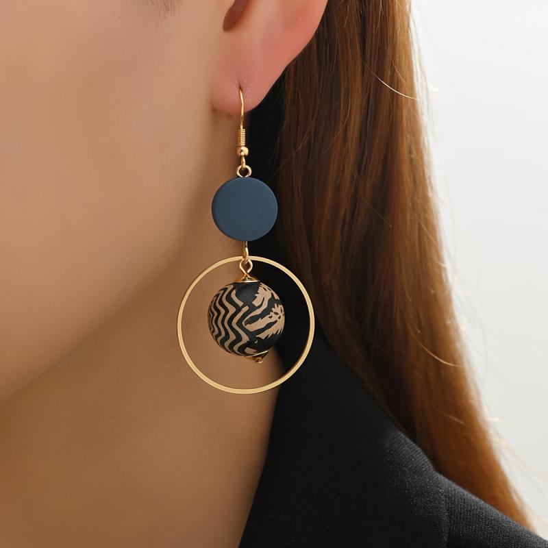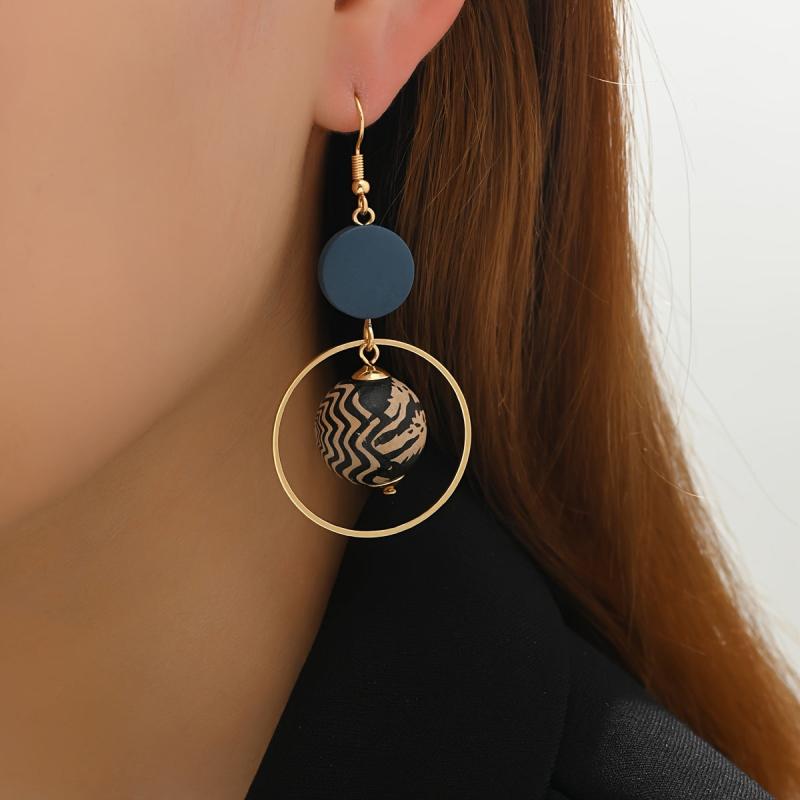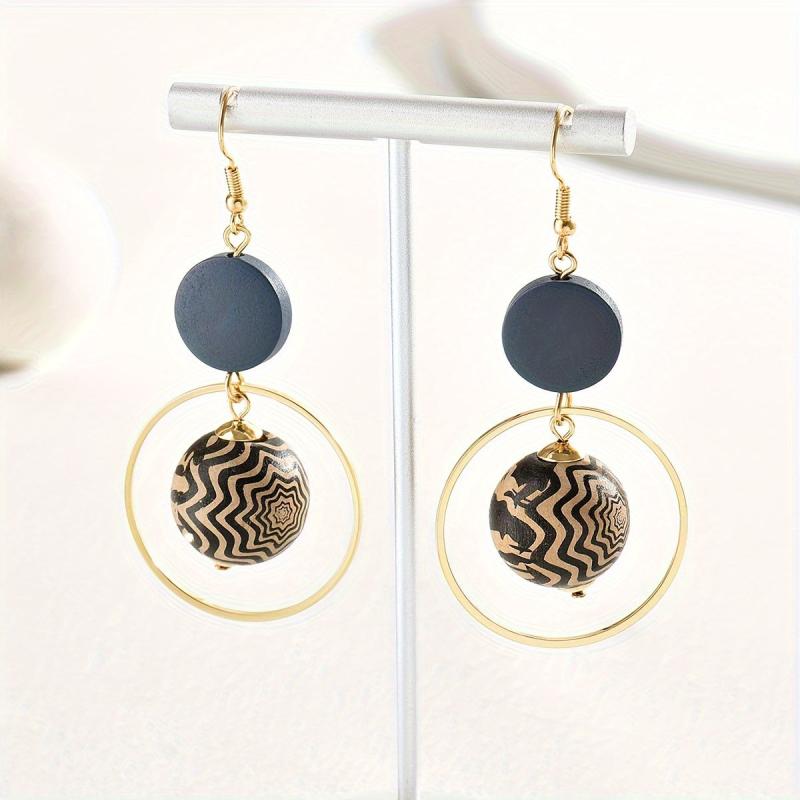 Add a touch of bohemian style to your holiday look with these wooden bead dangle earrings featuring hollow circle design.