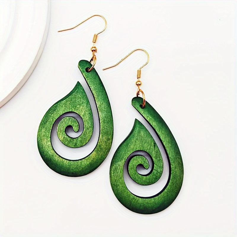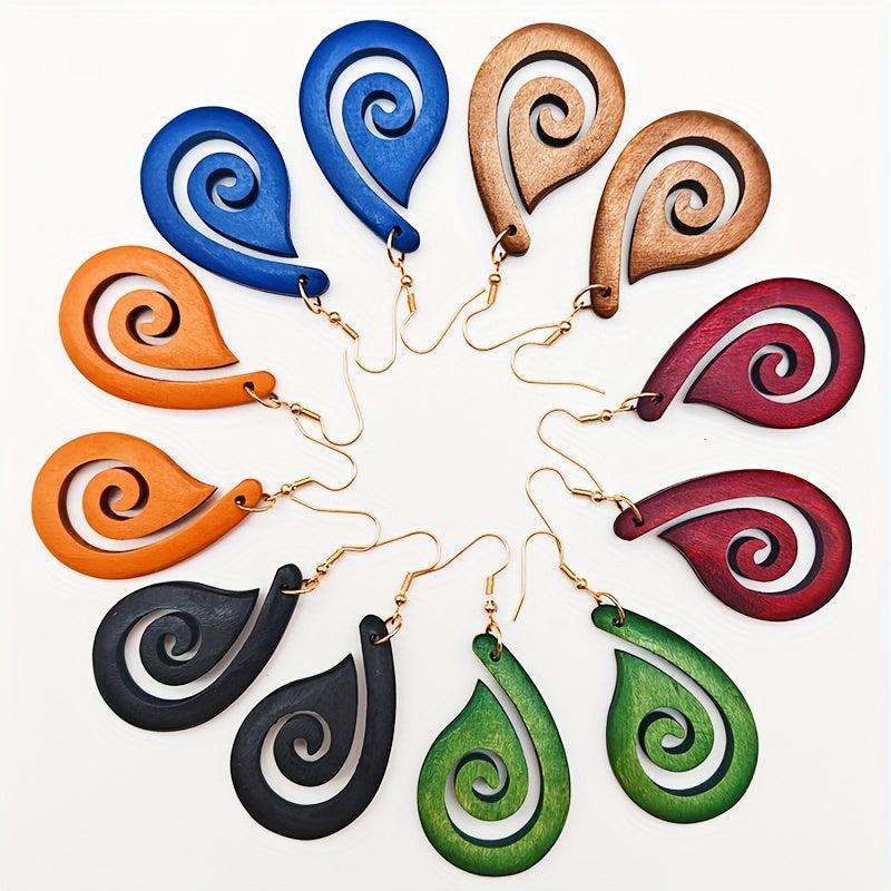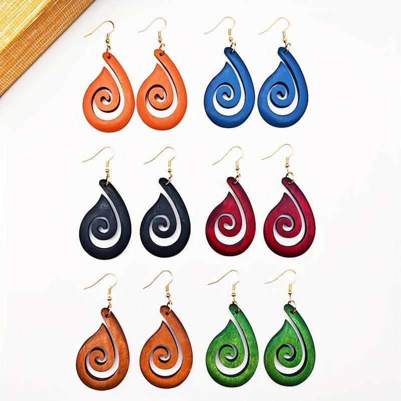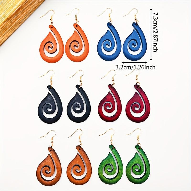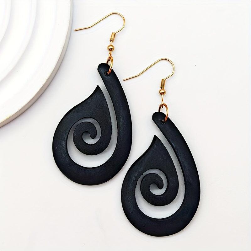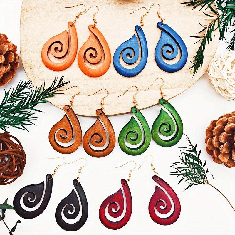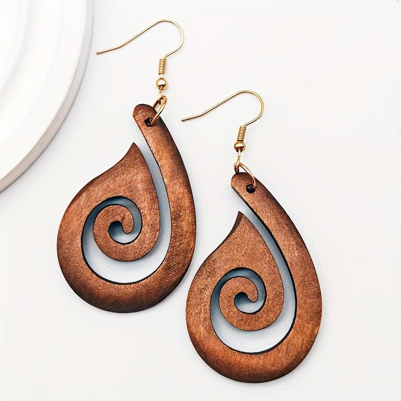Bohemian Wooden Hollow Out Drop Earrings Snail Shaped Dangle Earrings