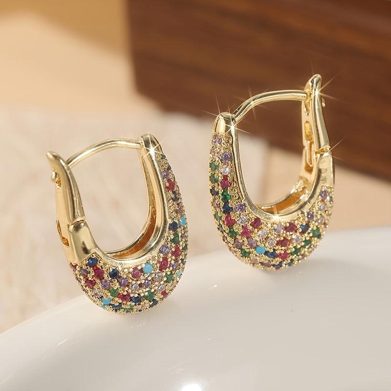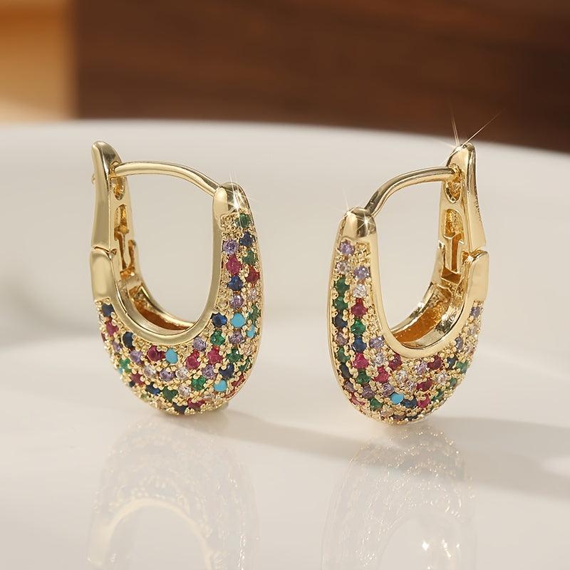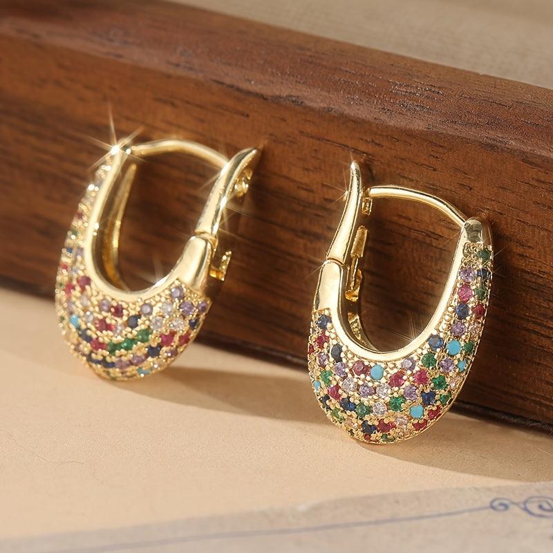 Enhance your style with these retro hoop earrings featuring synthetic zirconia and multicolor gemstones. Perfect for parties, weddings, or casual attire.