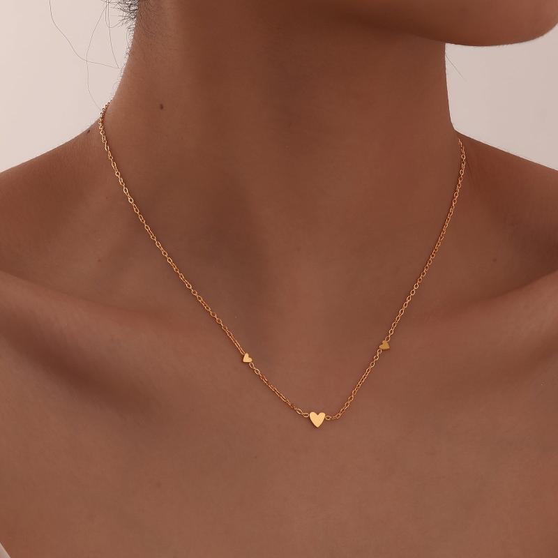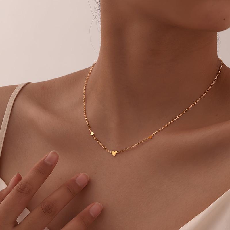 Elegant 18K gold-plated stainless steel necklace with love heart pendant. Perfect for daily wear and ideal as a Christmas gift for women. No mosaic design.