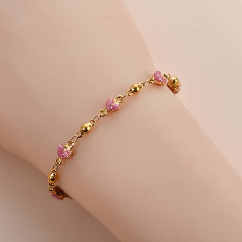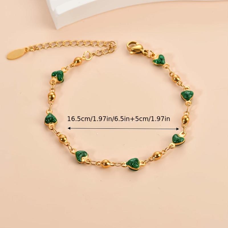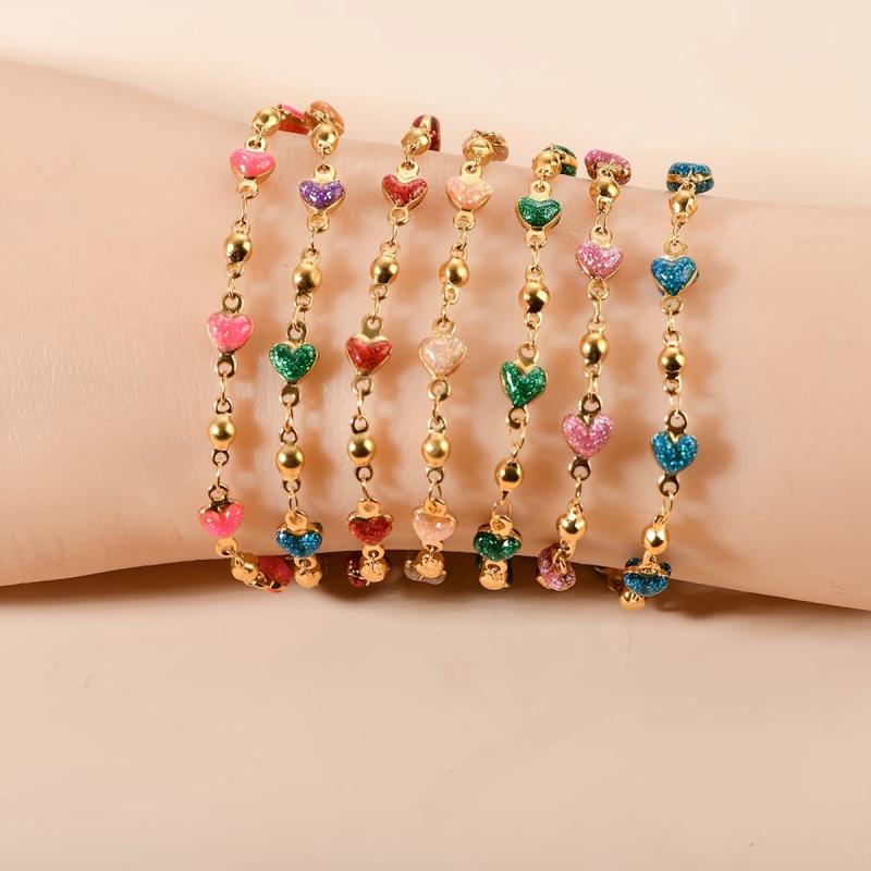 Add a touch of bohemian style to your outfit with this double-sided heart charm bracelet. Made of durable 304 stainless steel, this bracelet features multicolor heart charms and a high-quality 18K gold plating. Perfect for everyday wear or special occasions.