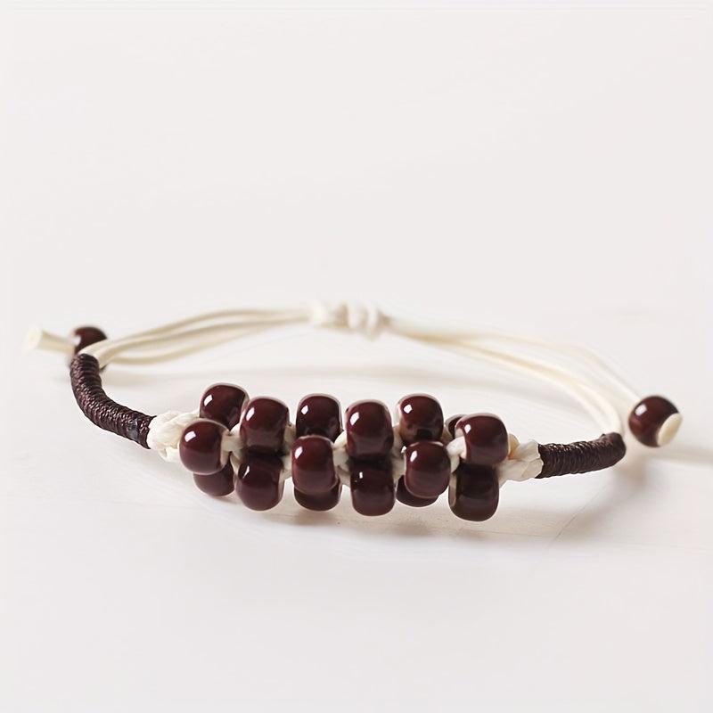 This bohemian bracelet features red ceramic beads and an elastic cord, making it perfect for daily wear and parties. The ethnic style adds a unique touch to your outfit.