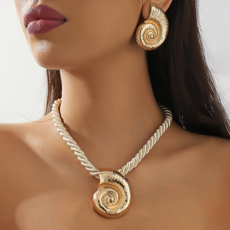 Elevate your style with this boho zinc alloy jewelry set featuring a starfish & seashell pendant necklace and matching earrings. Perfect for daily wear or music occasions. This 3-piece set has no plating.