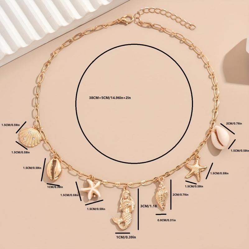 Add a touch of bohemian charm to your beach outfit with this adjustable choker necklace featuring seashell, starfish, and mermaid pendants. Perfect for casual attire and beach parties.