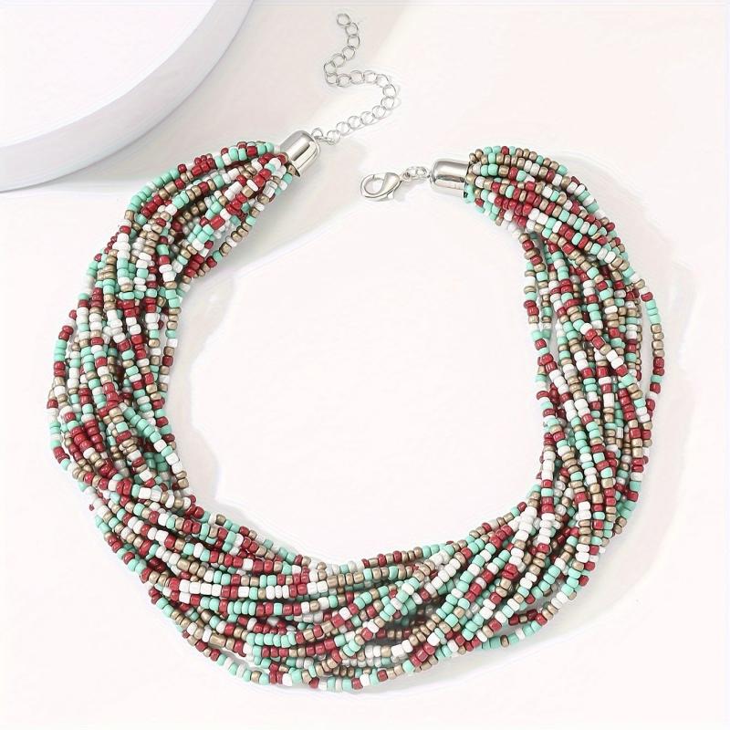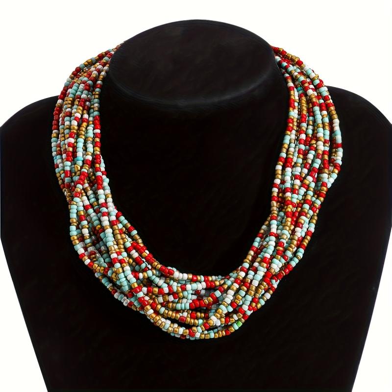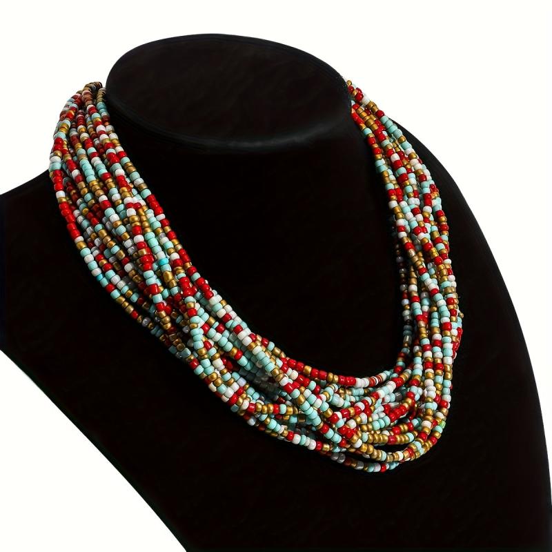 Elevate your style with this stunning Bohemian beaded necklace featuring a mix of turquoise, red, and colorful beads. Perfect for daily wear, vacation, and parties.