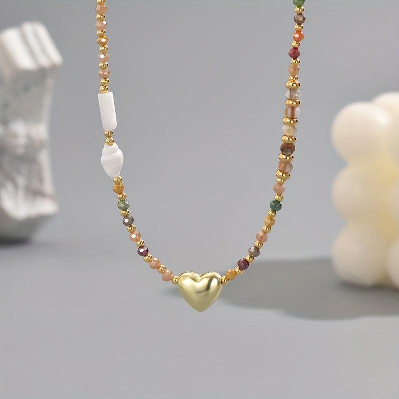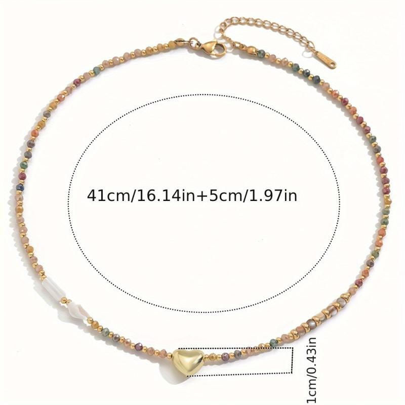 Elevate your style with this boho beaded necklace featuring an artificial crystal heart pendant. Perfect for daily wear or parties, this accessory can be worn all year round.