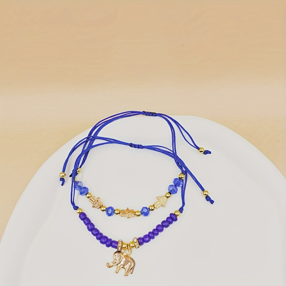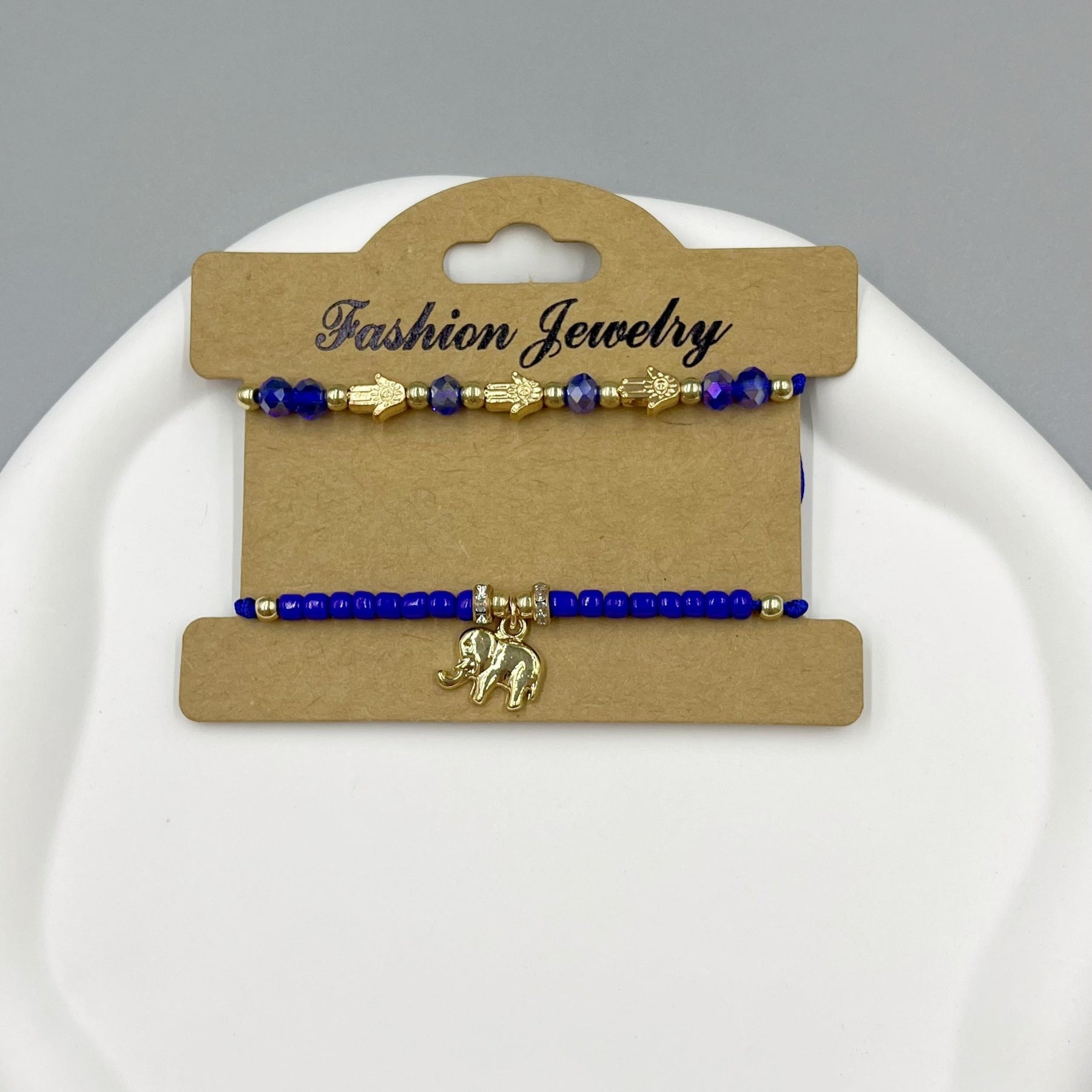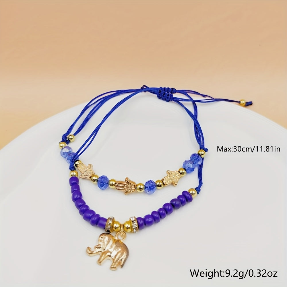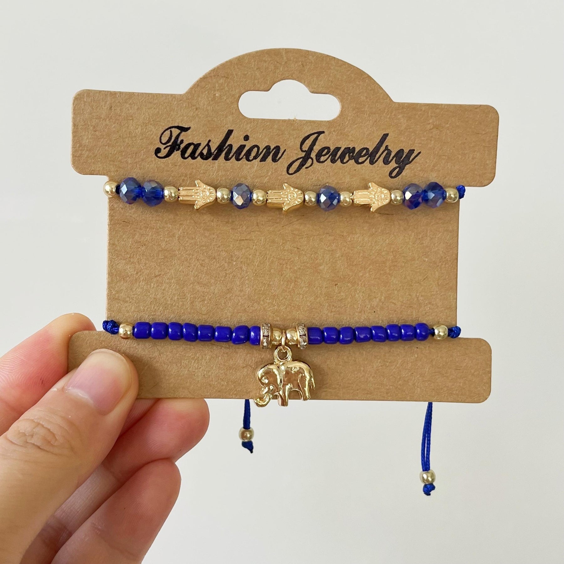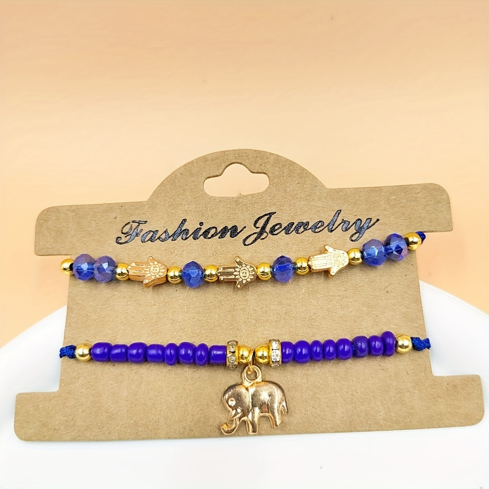 This set features a bohemian style wrist bracelet with elephant pendant and palm crystal beads, perfect for friendship gifts. Each bracelet comes with a special card.