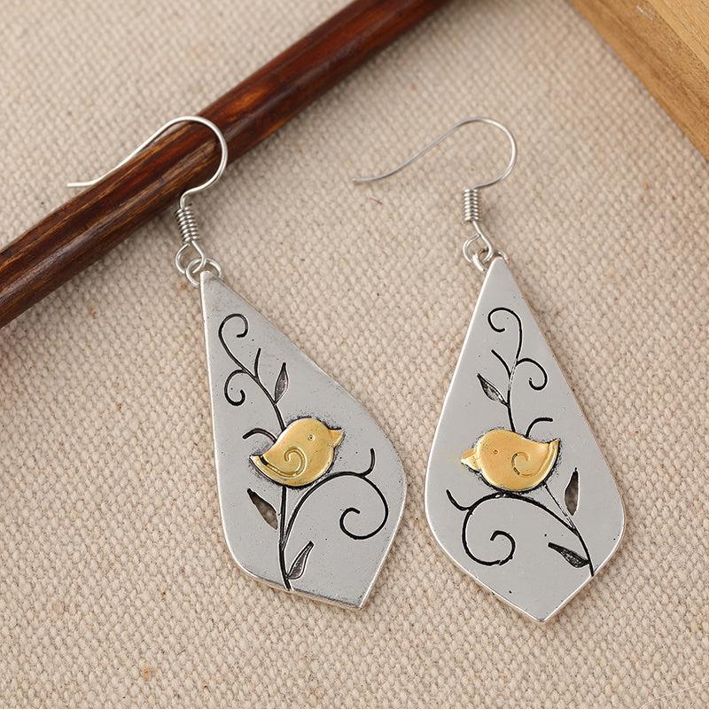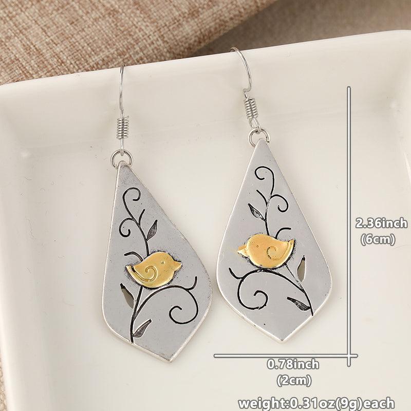 Add a touch of bohemian style to your outfit with these vintage-inspired dangle earrings. The copper-plated K golden tone complements the bird and grass print design. Perfect for daily wear or as a thoughtful gift.