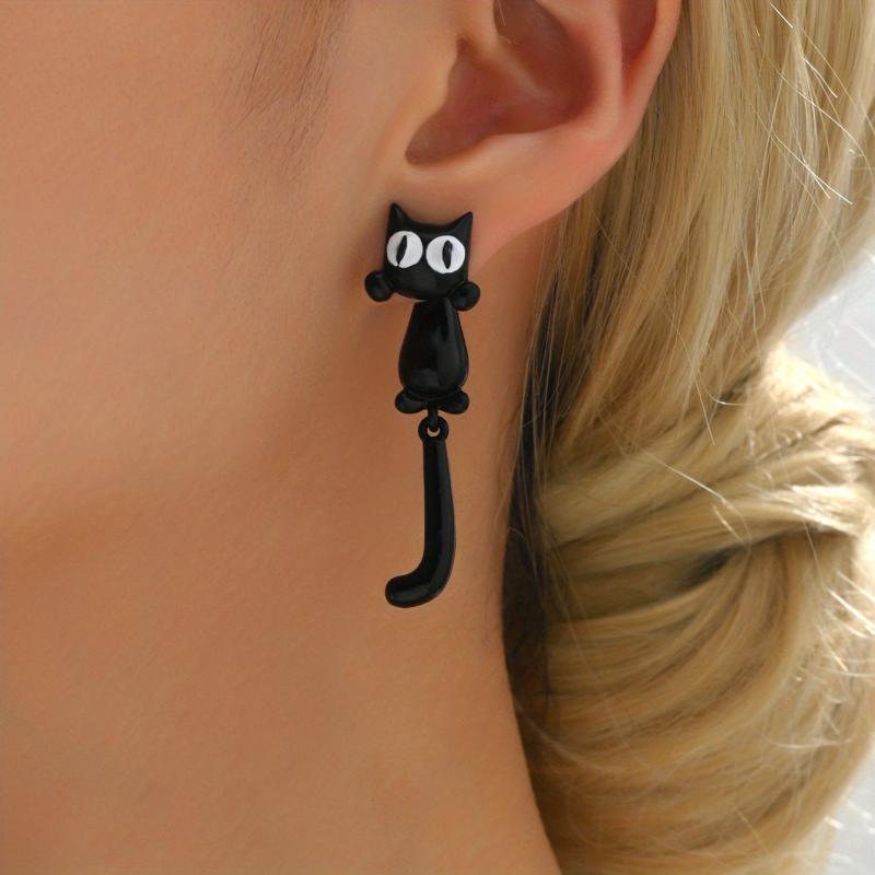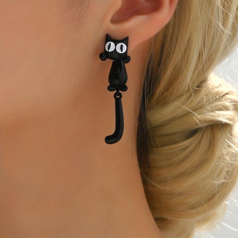 These fun and bohemian style zinc alloy dangle earrings feature adorable cartoon cat designs. A delicate and whimsical gift for cat lovers.