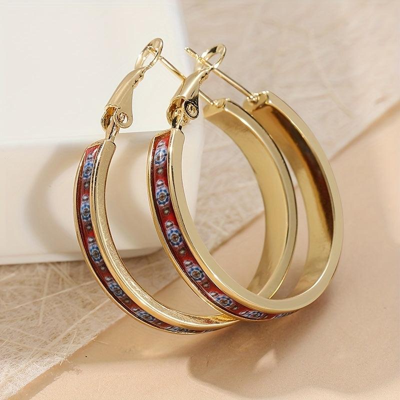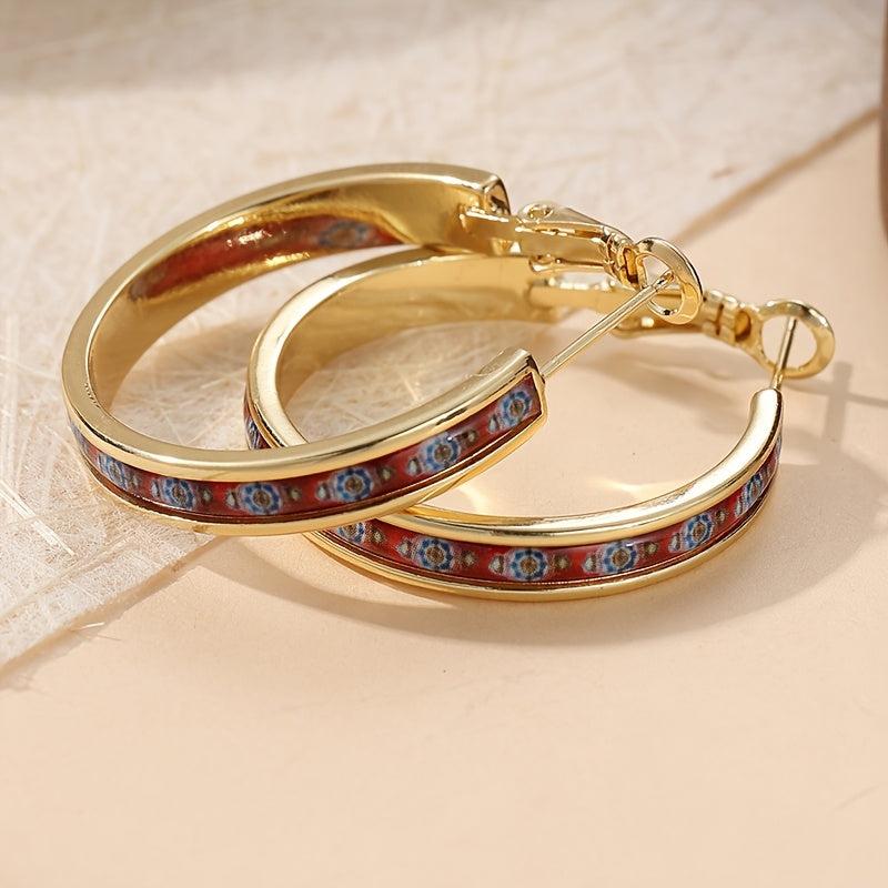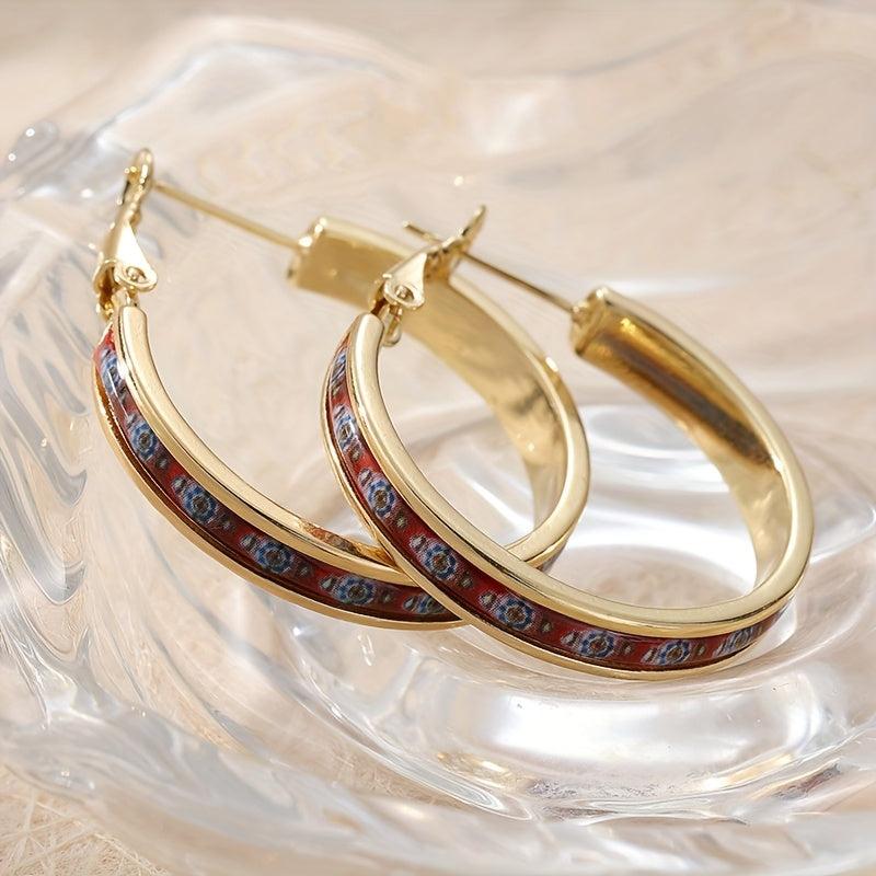 These vintage-inspired hoop earrings feature intricate copper inlaid palace motifs, making them perfect for parties or special occasions. They also make an ideal gift for her.