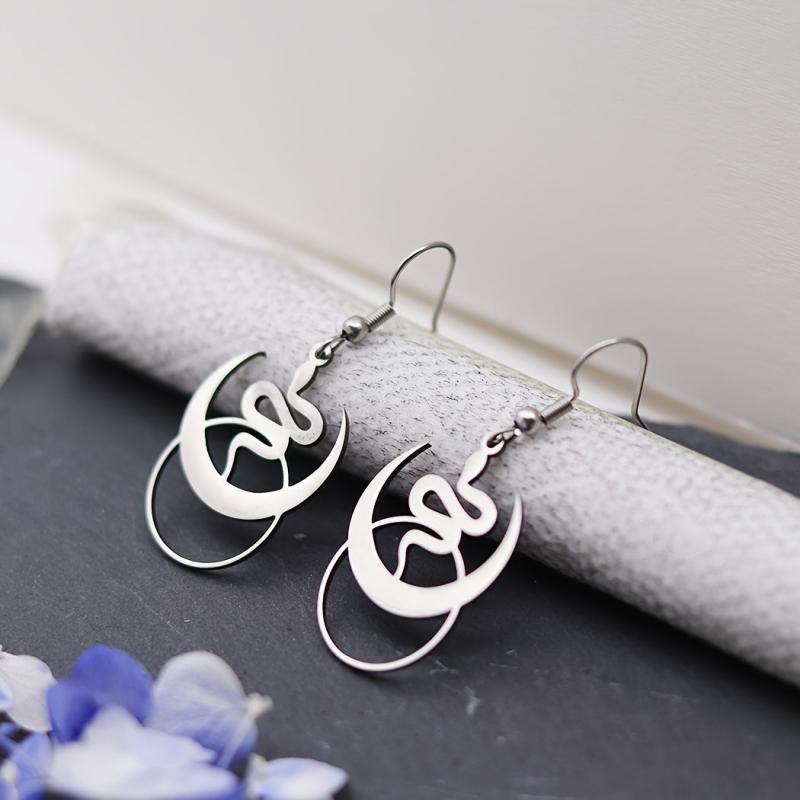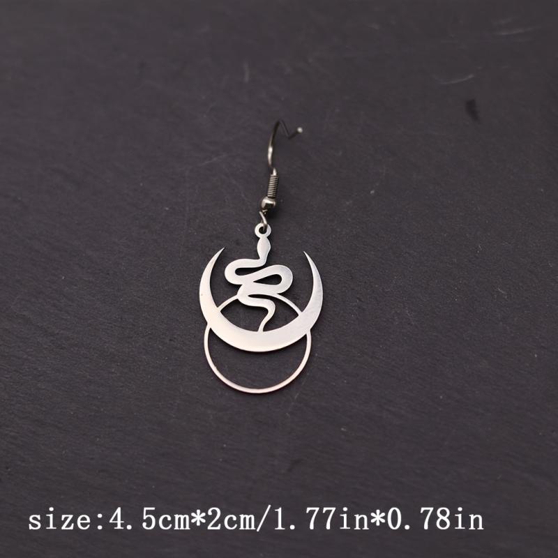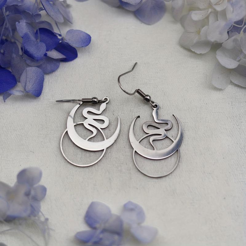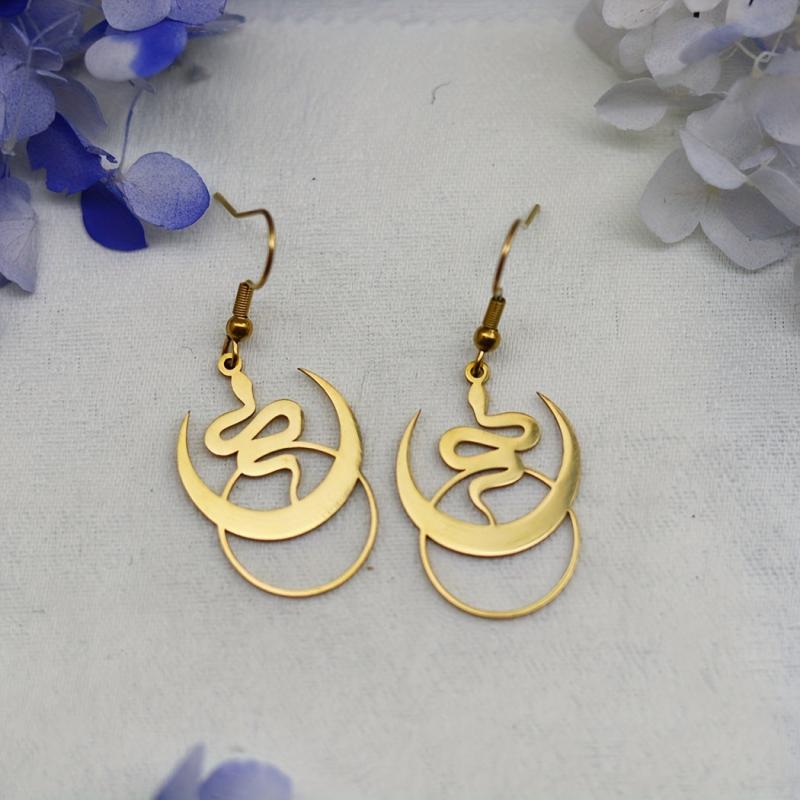 Elevate your style with these intricate Bohemian Crescent Moon & Snake Pendant Earrings. Made from durable stainless steel, these hypoallergenic earrings are perfect for casual or edgy looks.