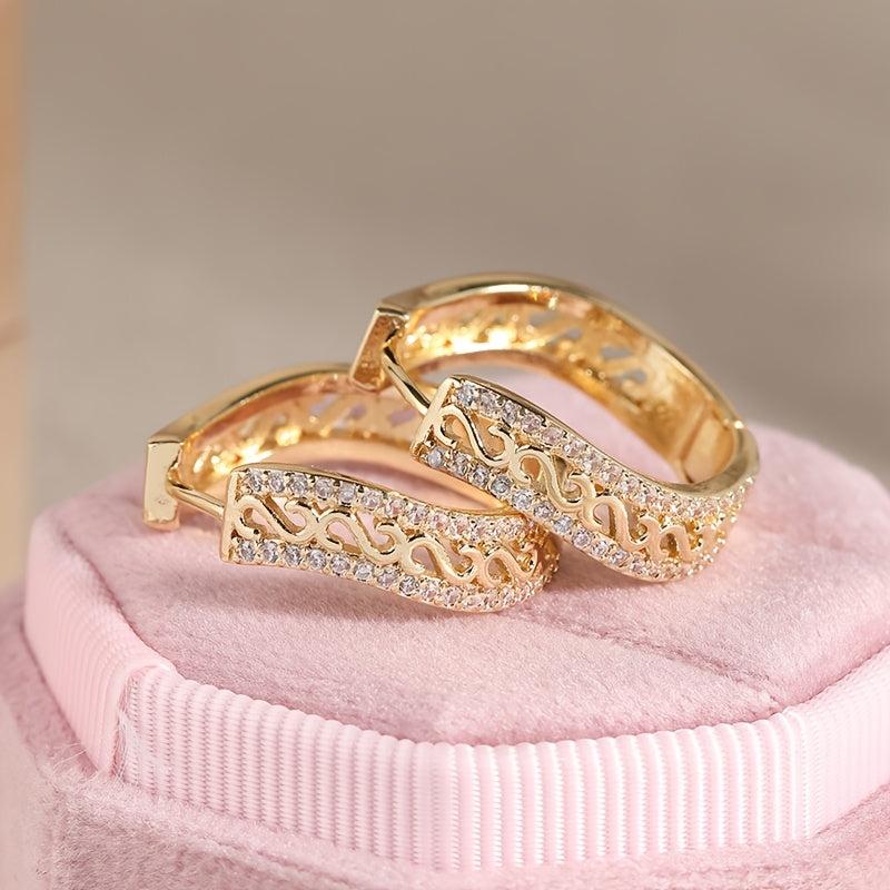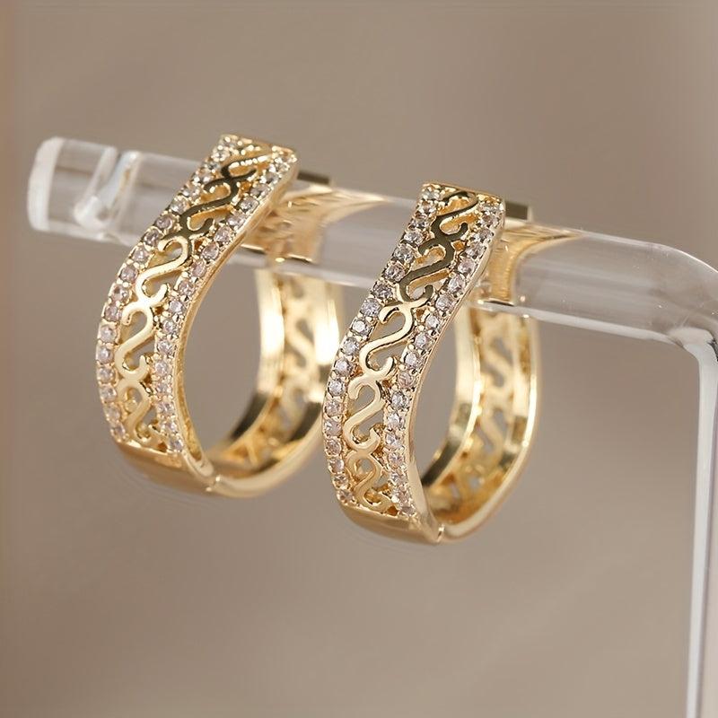 Vintage boho style earrings made of 14K golden plated copper with synthetic zirconia inlay. Ideal for daily wear and gift giving during Christmas.