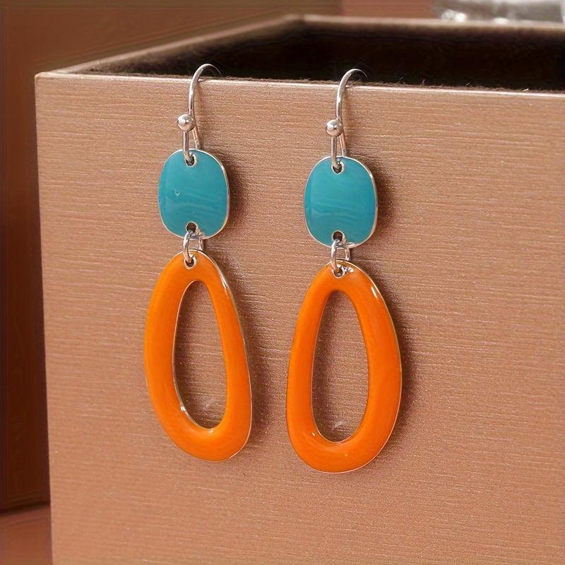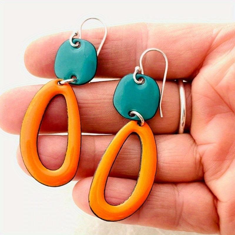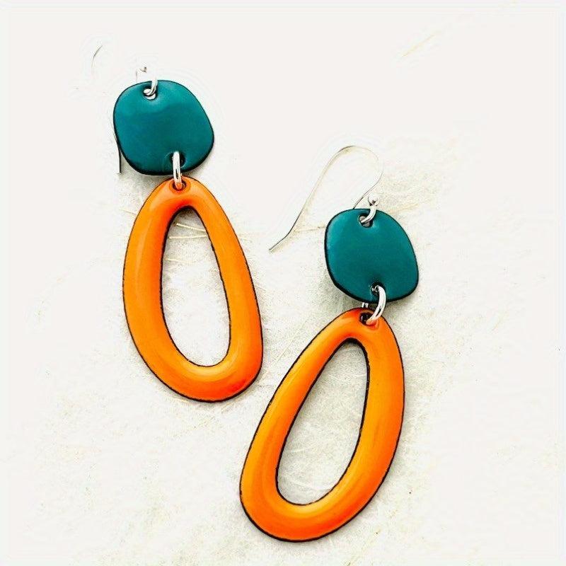 Add a pop of color to your casual outfit with these orange and teal enamel dangle earrings. These vintage bohemian style earrings are great for daily wear and make a perfect gift for women.