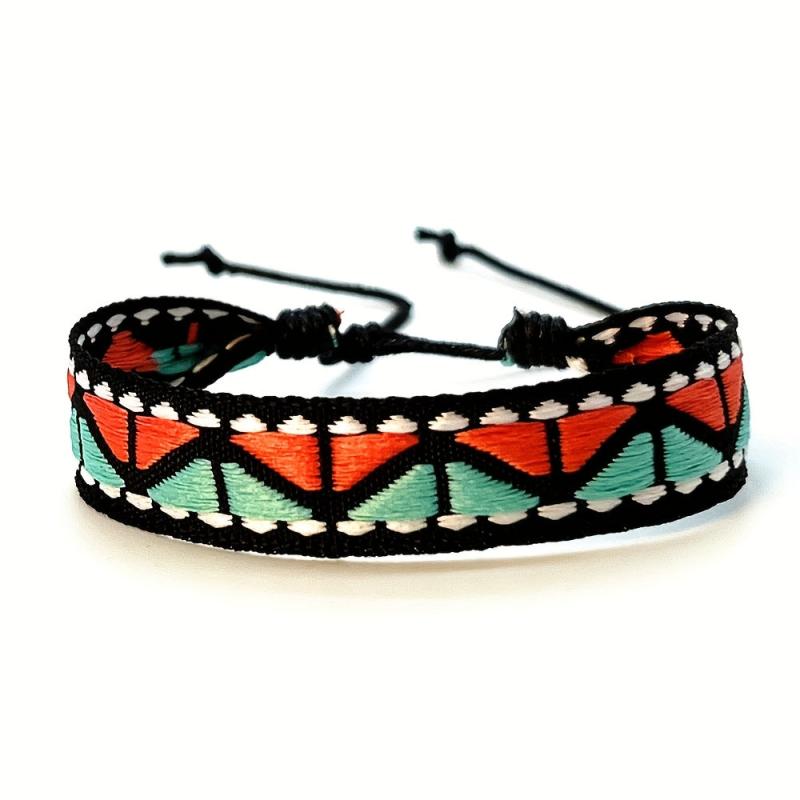 Add a touch of bohemian flair to your outfit with this handwoven bracelet. Perfect for music festivals, daily wear, and holiday celebrations.