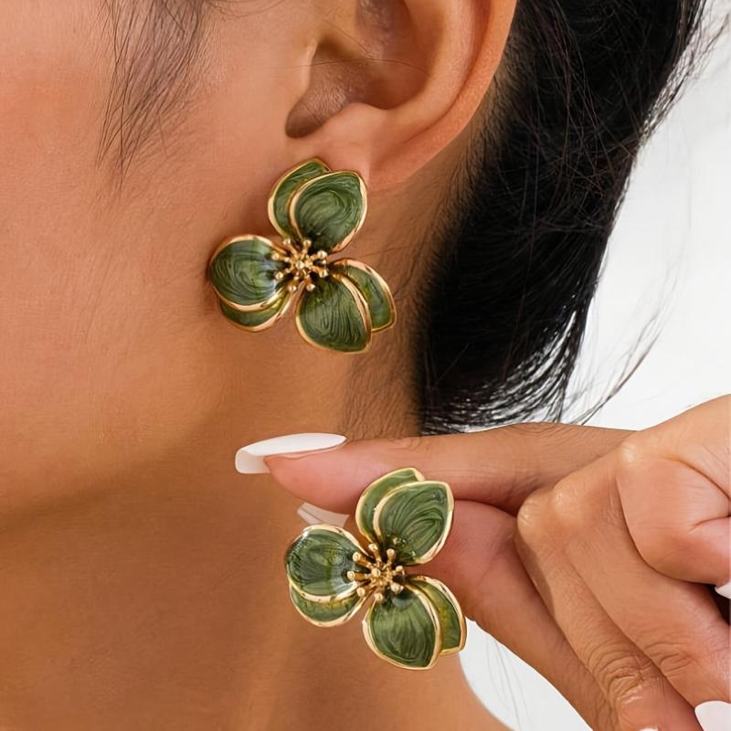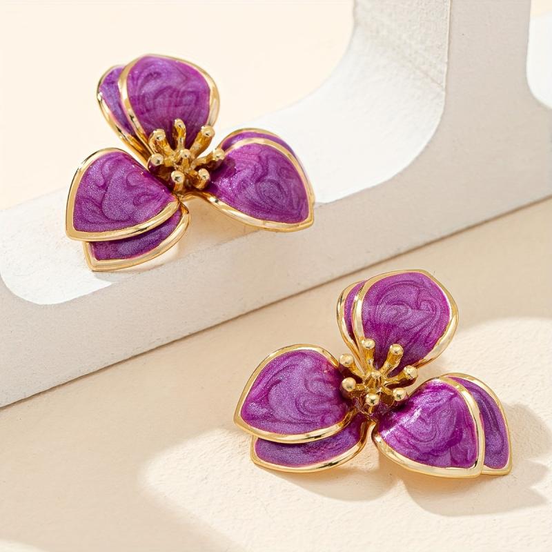 Boho Floral Enamel Stud Earrings for Women Iron Post Daily Wear Parties