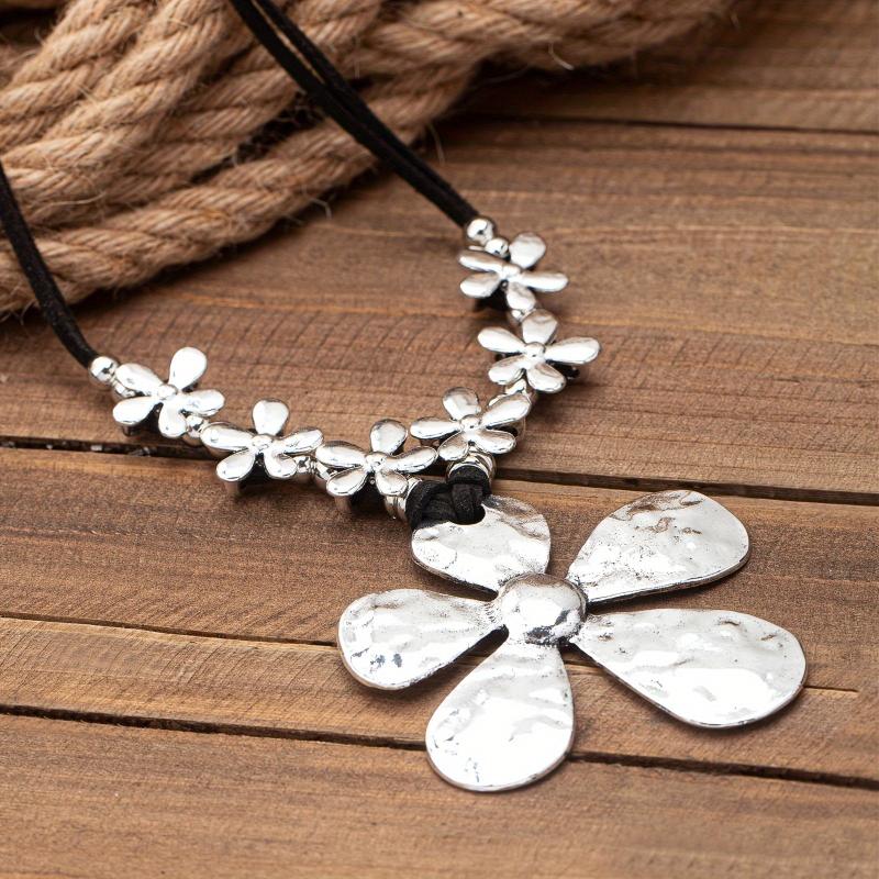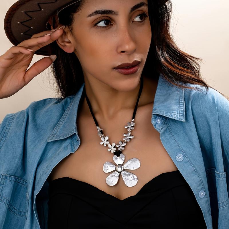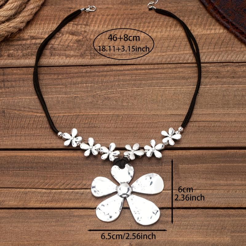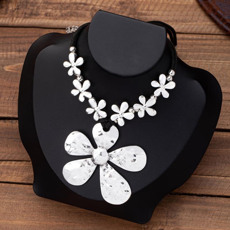 Elevate your holiday look with this vintage bohemian necklace featuring an exaggerated floral design. Make a unique style statement with this eye-catching accessory.