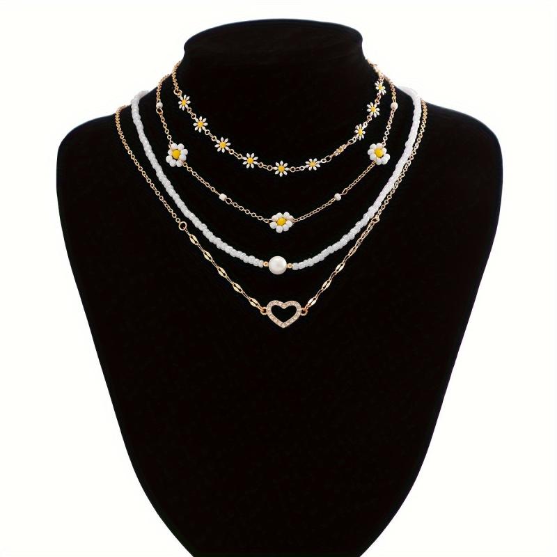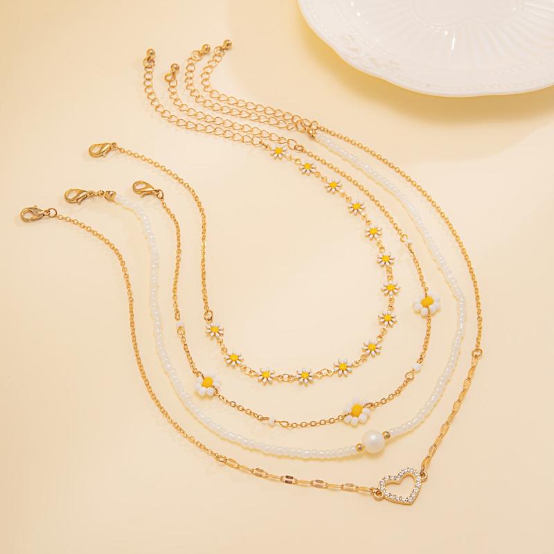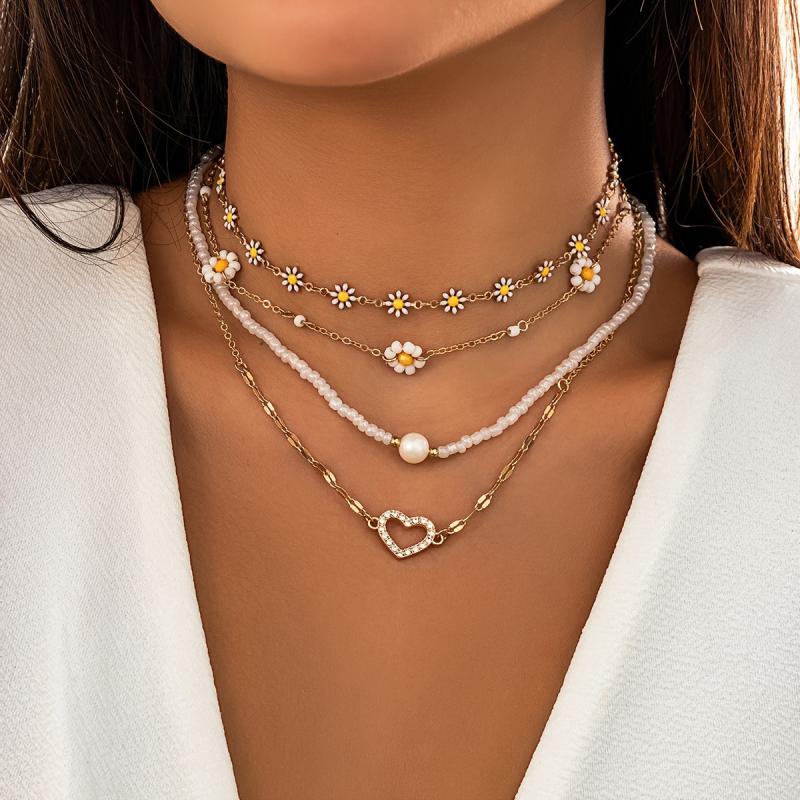 This 4-piece set features dripping flower and heart pendants with artificial rhinestone beads. Perfect for a bohemian vacation look.