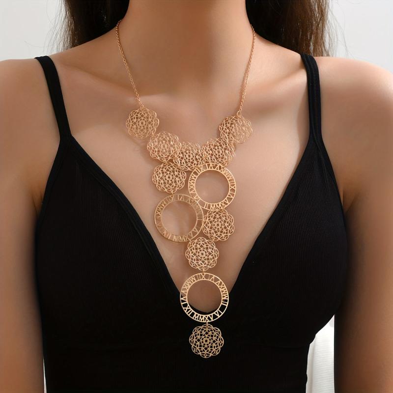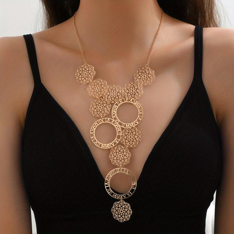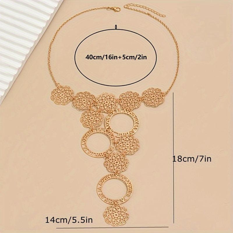Make a statement with this boho-inspired flower shaped necklace featuring a tassel and golden finish. Perfect for adding a touch of unique style to any outfit.