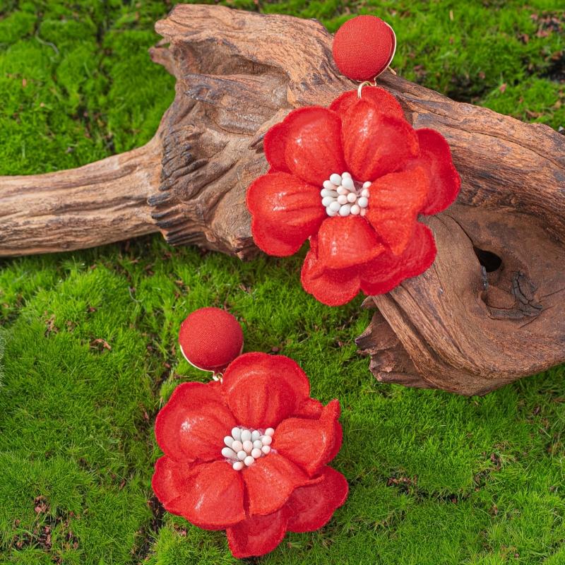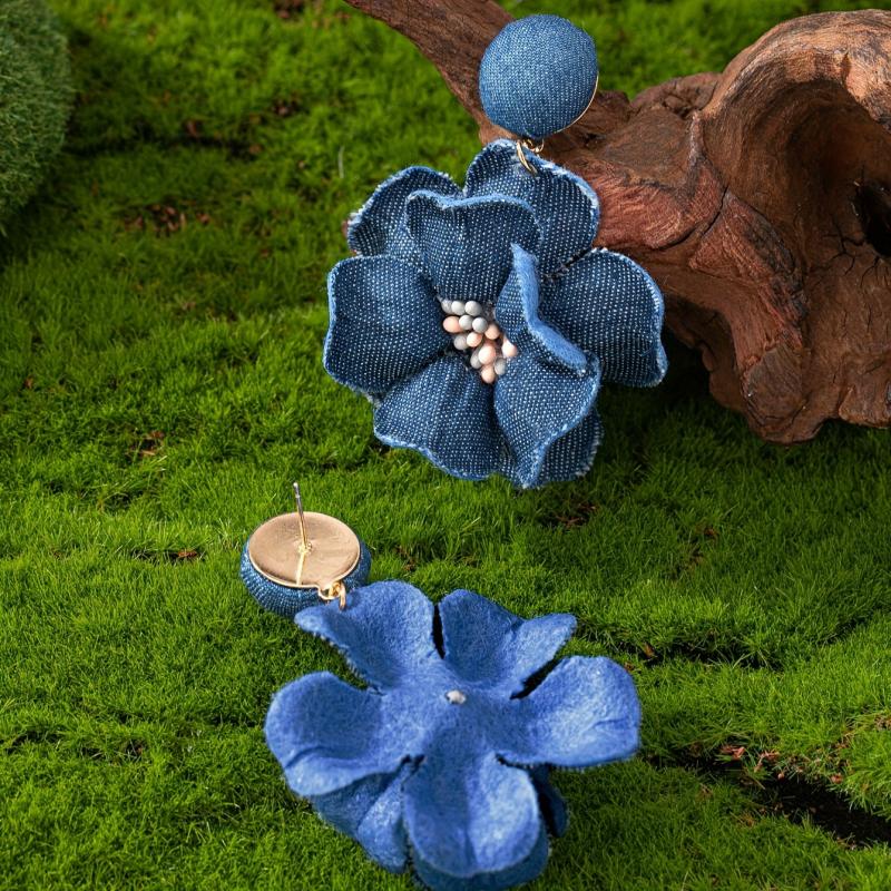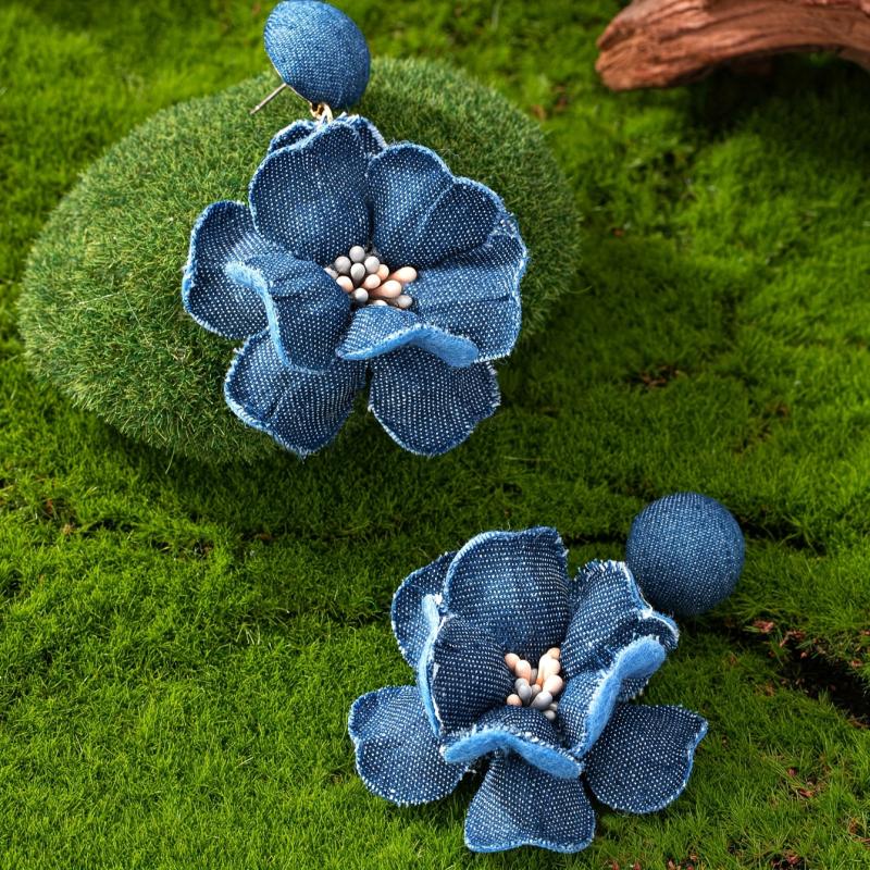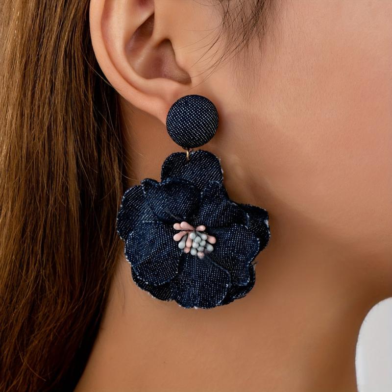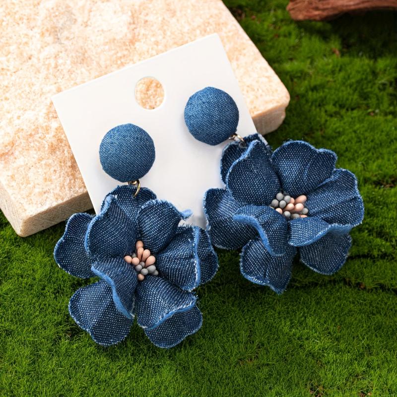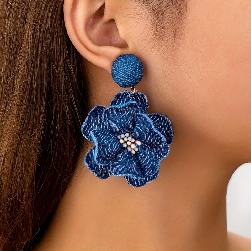 These versatile earrings feature a polyester cowboy flower design with iron posts, perfect for daily wear, parties, and weddings.