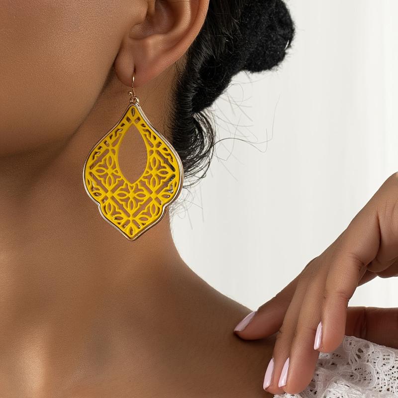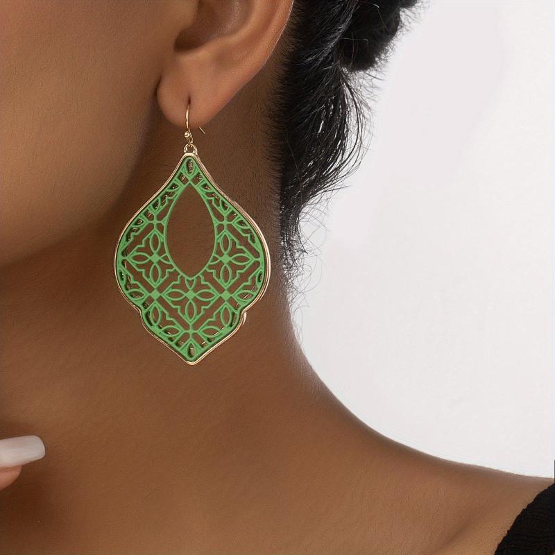 Add a unique touch to your style with these boho geometric shape drop earrings. A perfect gift for women who love stylish accessories.