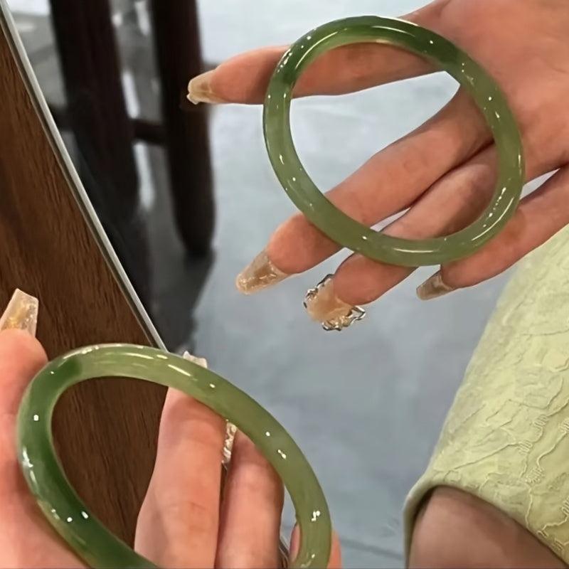 Add a touch of bohemian style with this versatile green and translucent glass bangle. Perfect for casual attire and everyday accessory.