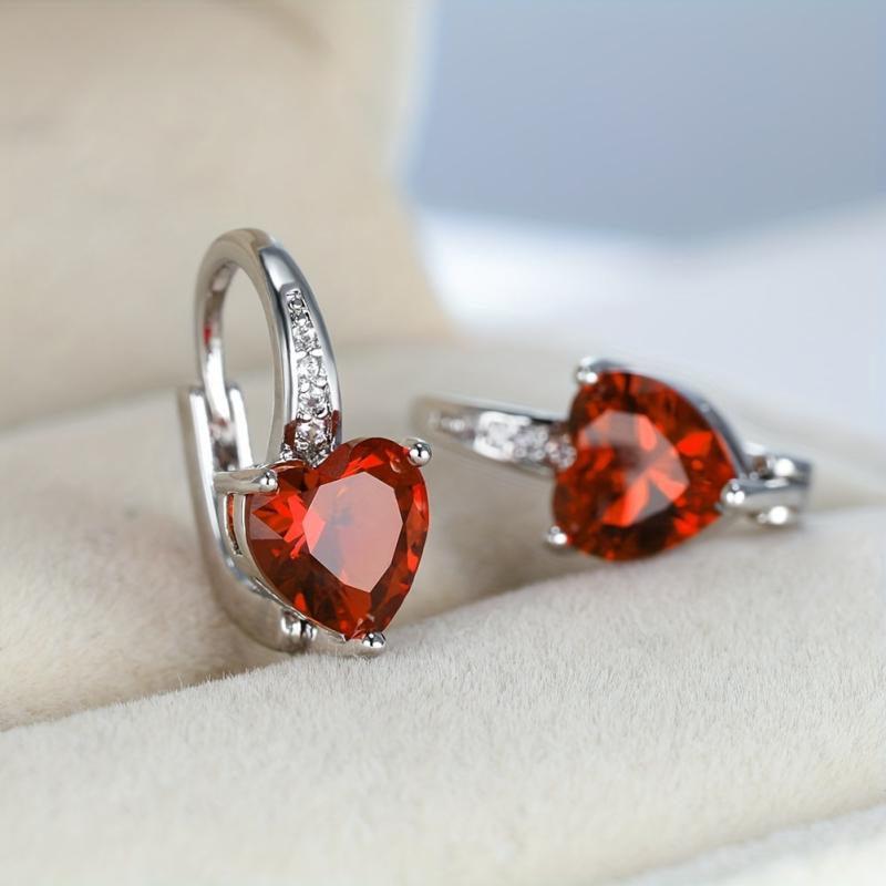 Add a pop of color to your outfit with these stylish heart-shaped red earrings embellished with sparkling cubic zirconia accents. Perfect for everyday wear and special occasions.