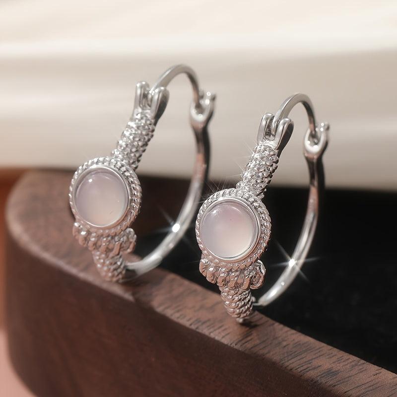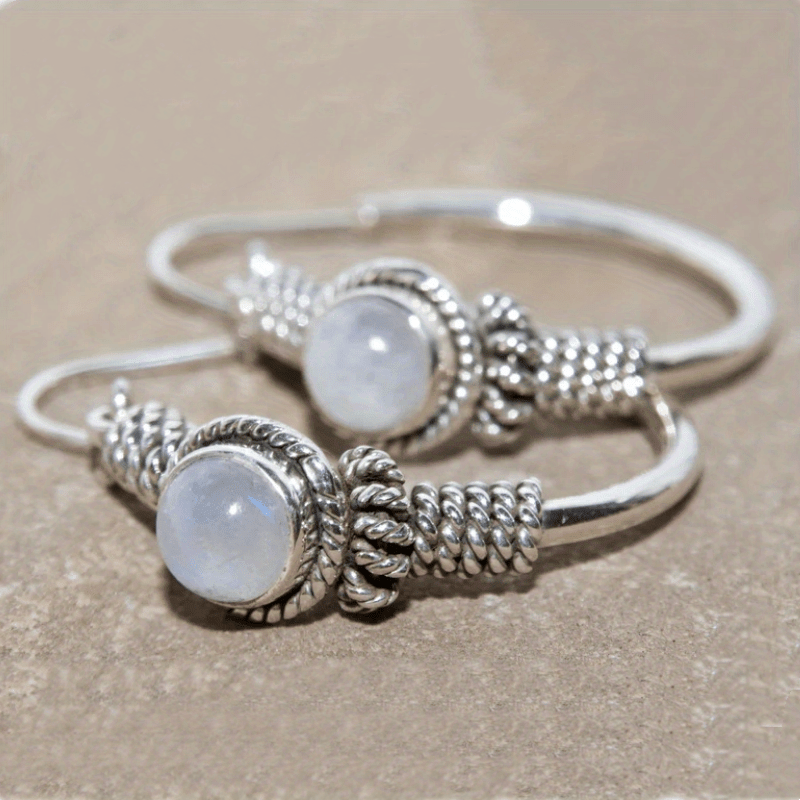 These large hoop earrings feature stunning rainbow moonstones for a vintage boho look. Ideal for casual outfits and make a wonderful gift.