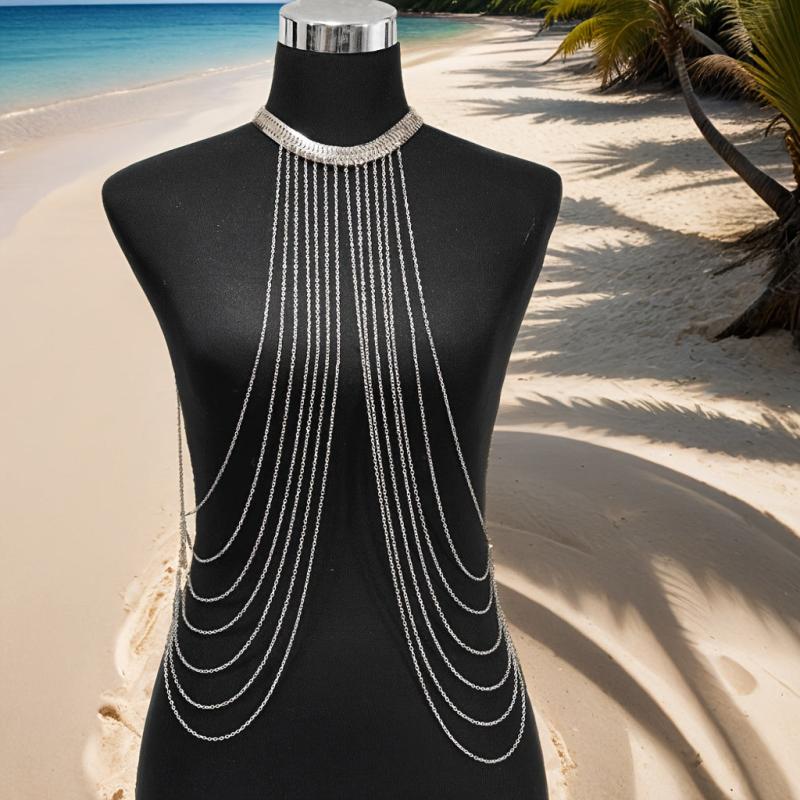 This versatile body chain is perfect for daily wear or party occasions. Made of high-quality alloy, it adds a touch of boho flair to any outfit. The snake chain design with tassel accents makes it a must-have accessory for all seasons.