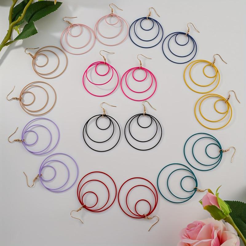 Add a bohemian touch to your look with these retro geometric layered hoop earrings. Featuring hollow circular options in various colors, these earrings are versatile for daily wear and special occasions.