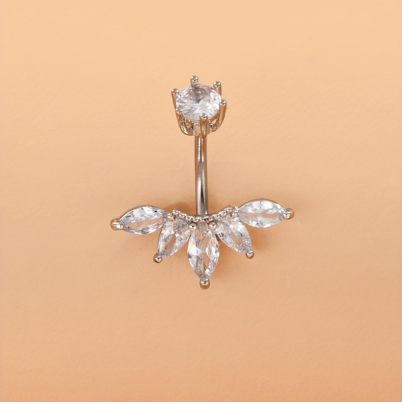 Enhance your style with this boho leaf-shaped belly button ring featuring stunning zircon inlay. Elevate your navel piercing jewelry collection.