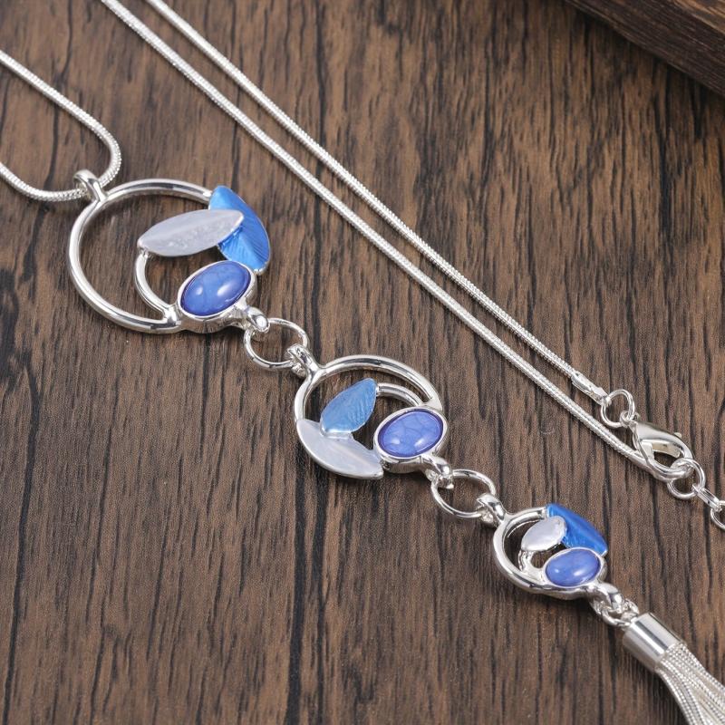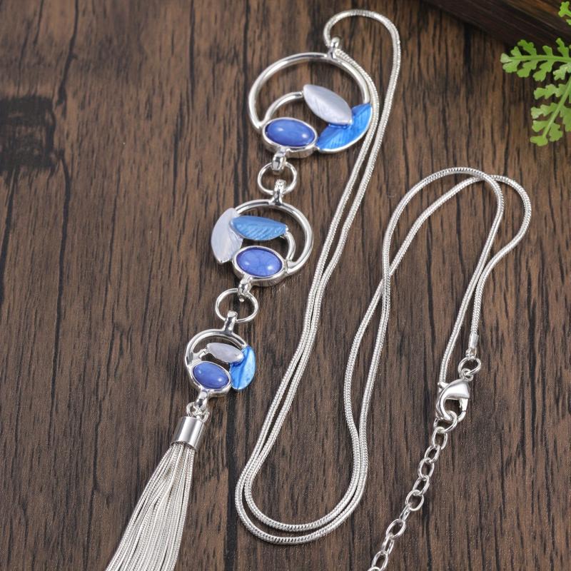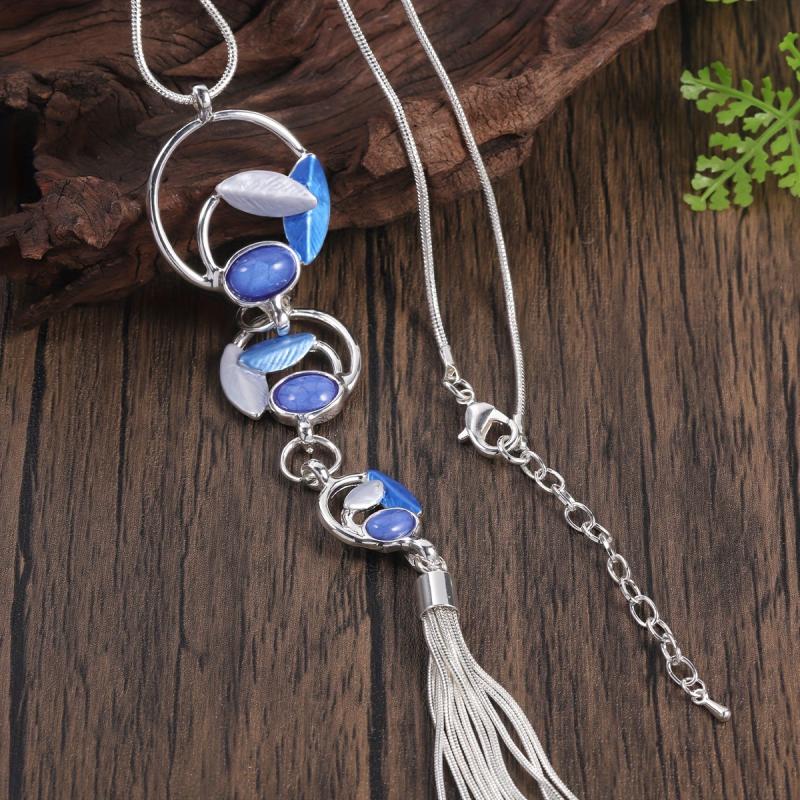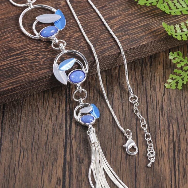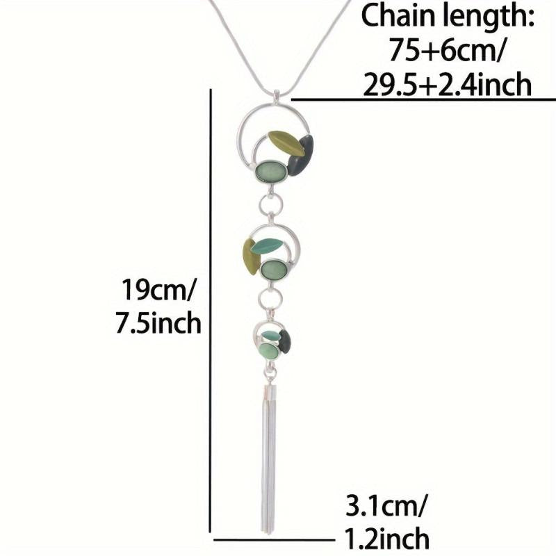 Add a touch of boho charm to your outfit with this leaf inlaid resin Y-shaped sweater chain. Perfect for fall and winter seasons!