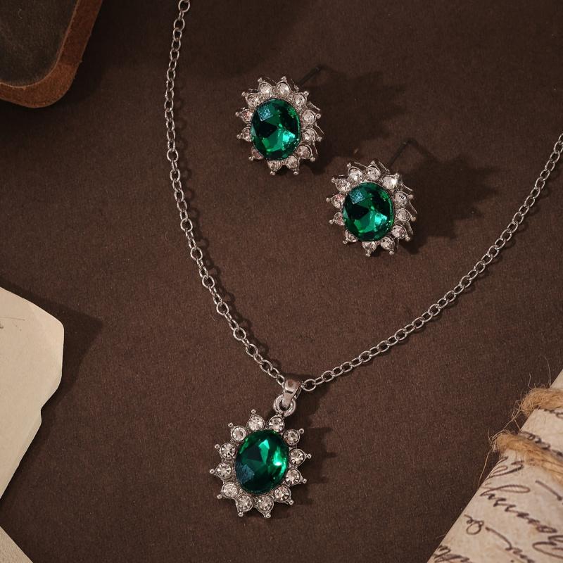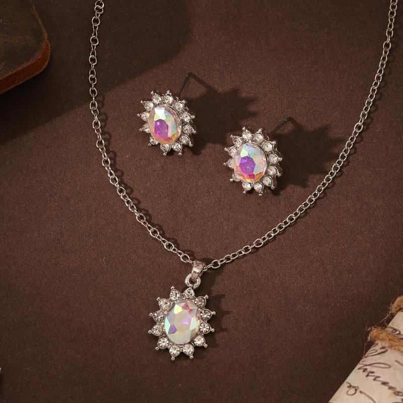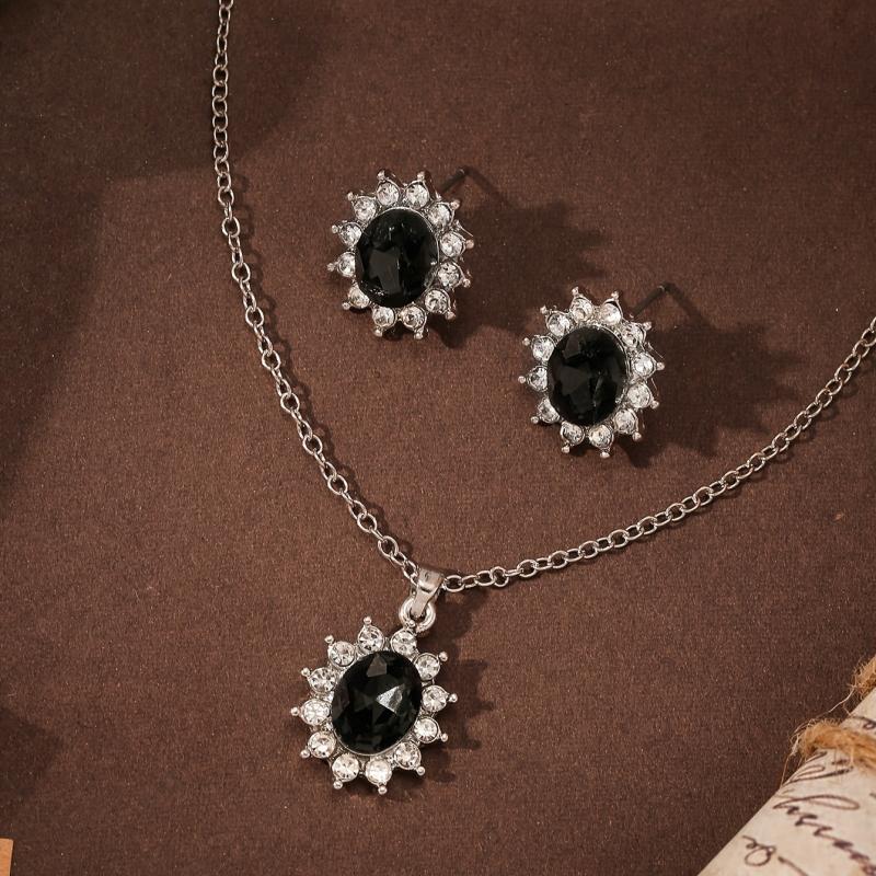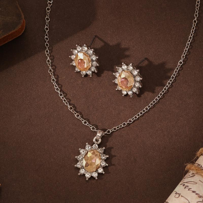 This vintage 3-piece jewelry set includes a necklace and earrings that are perfect for daily wear, parties, weddings, and engagements. Made of zinc alloy with intricate rhinestone detailing.