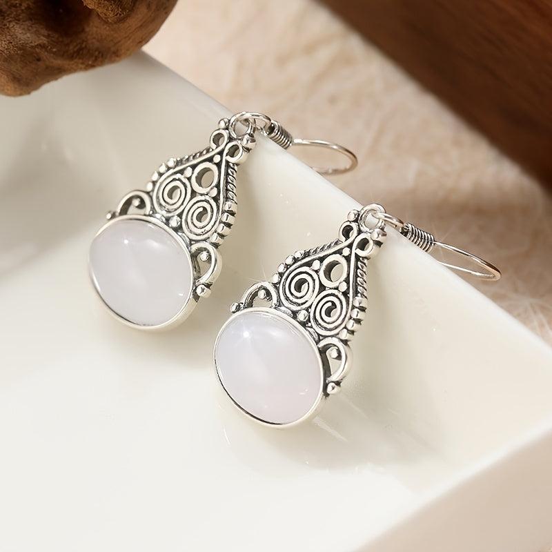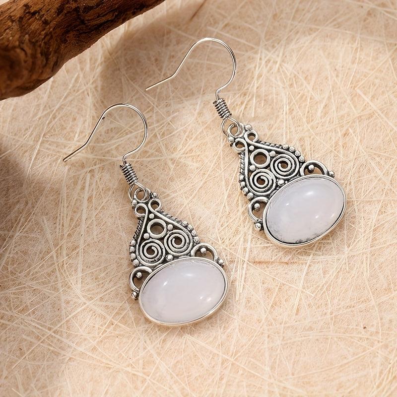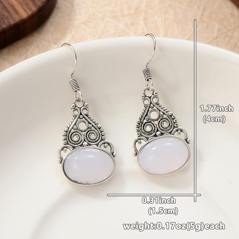 These oval-shaped Rainbow Moonstone earrings are perfect for her. The silvery plating adds a touch of elegance to the Boho design.