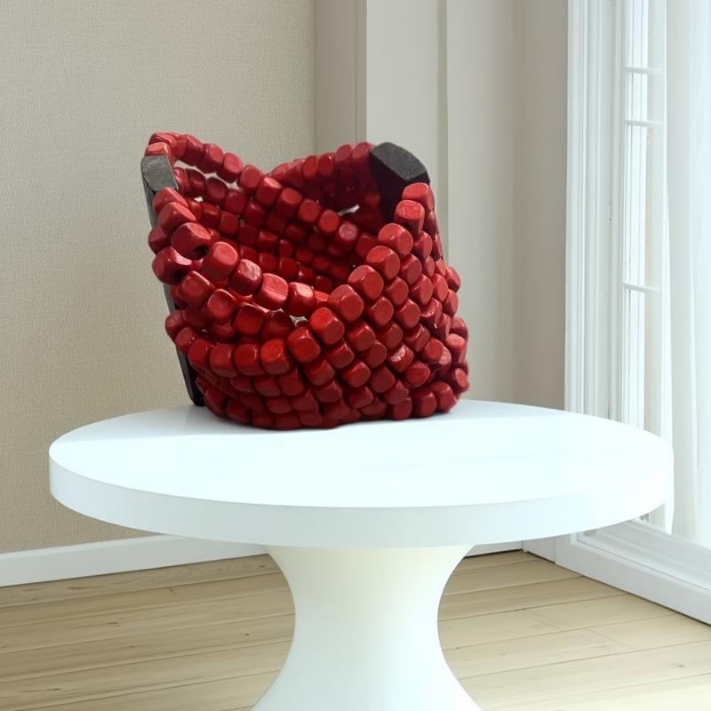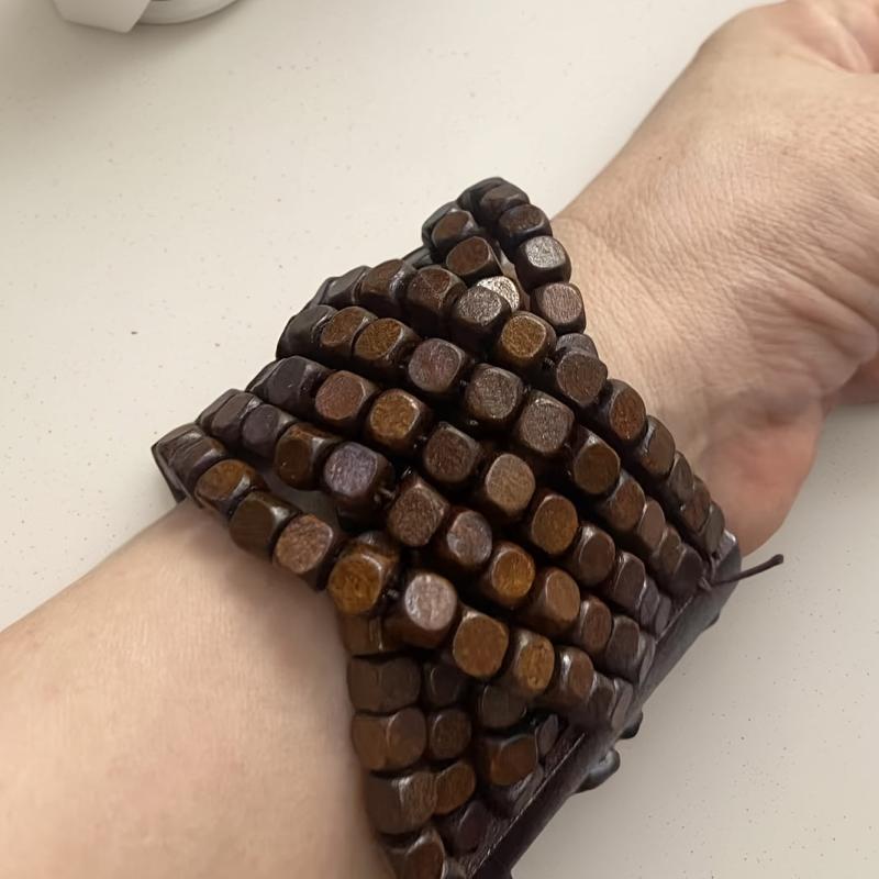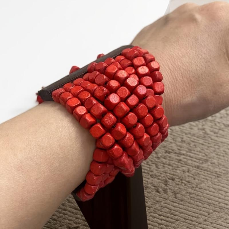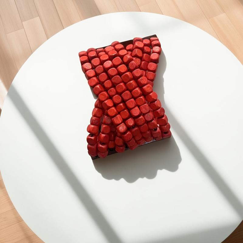 Add a touch of bohemian style to your outfit with this recycled wood bead braided bracelet. Featuring earthy brown and red colors, this bracelet is perfect for casual attire or as a thoughtful gift for a loved one.