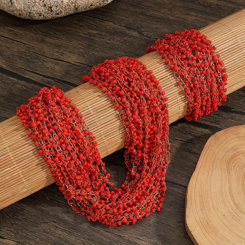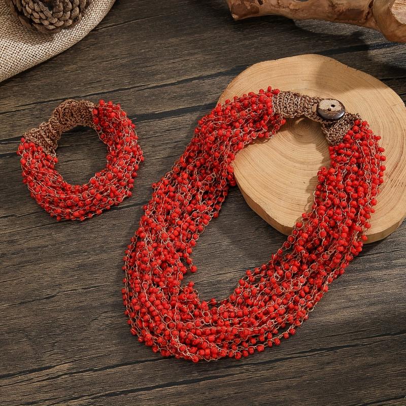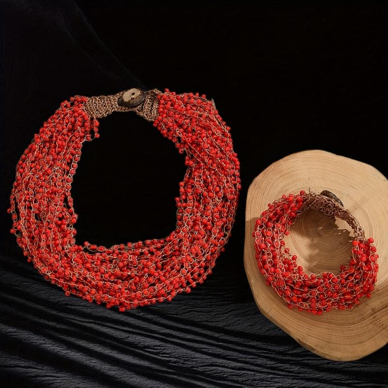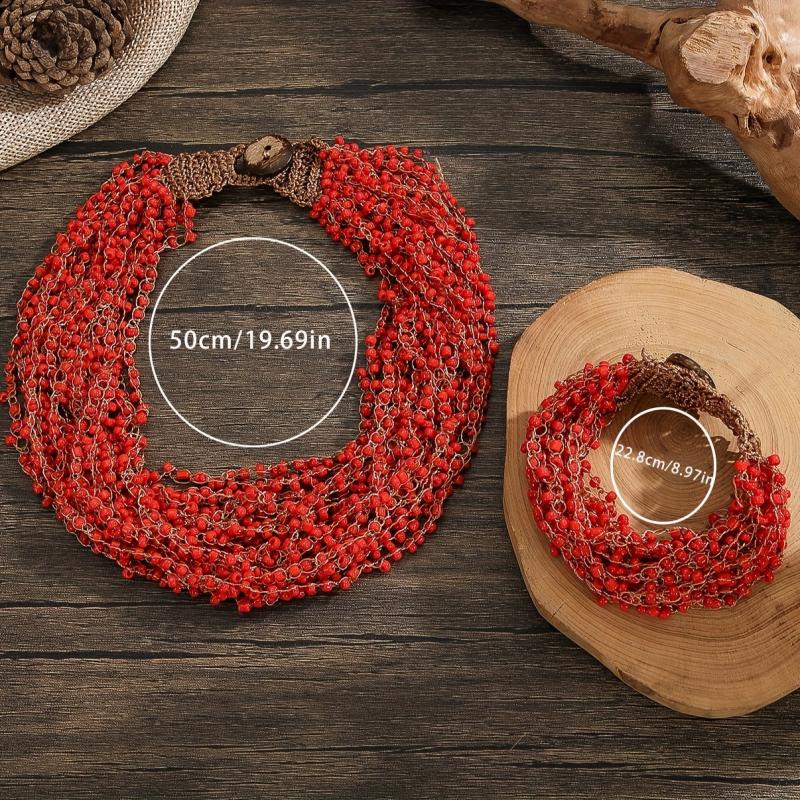 Elevate your style with this bohemian-inspired crochet beaded jewelry set in retro red. Perfect for summer, versatile for everyday wear.