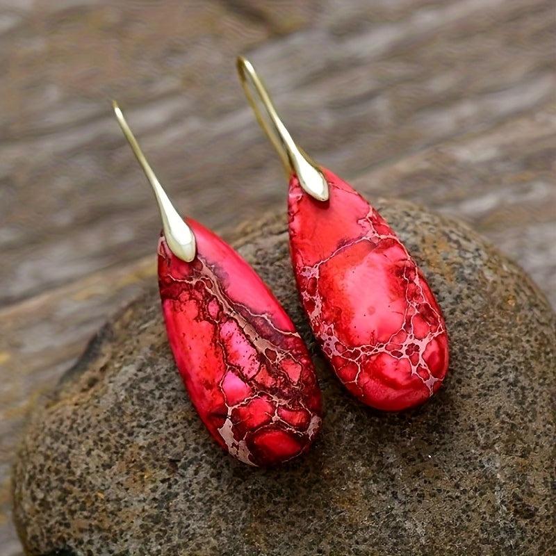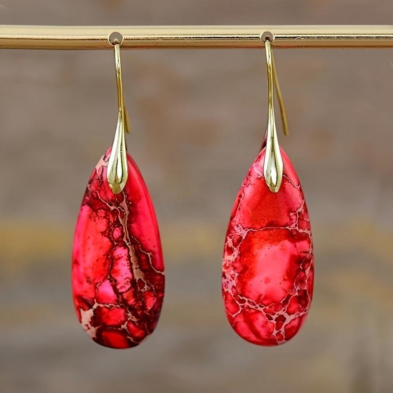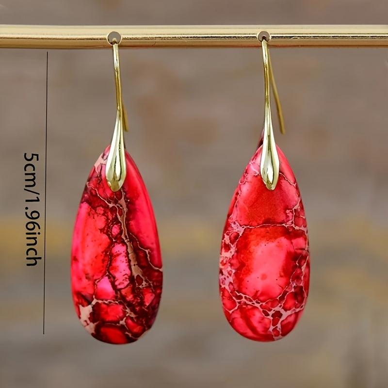 Add a touch of retro charm with these boho red stone earrings featuring a teardrop design and gradient finish. The golden hooks add a touch of elegance to your look.