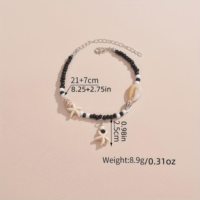 Elevate your style with this vintage boho ankle bracelet featuring resin shell, starfish, and beads. Ideal for daily wear and beach vacations.