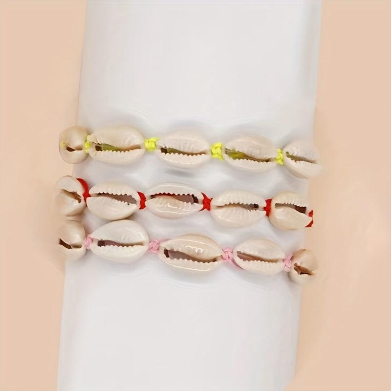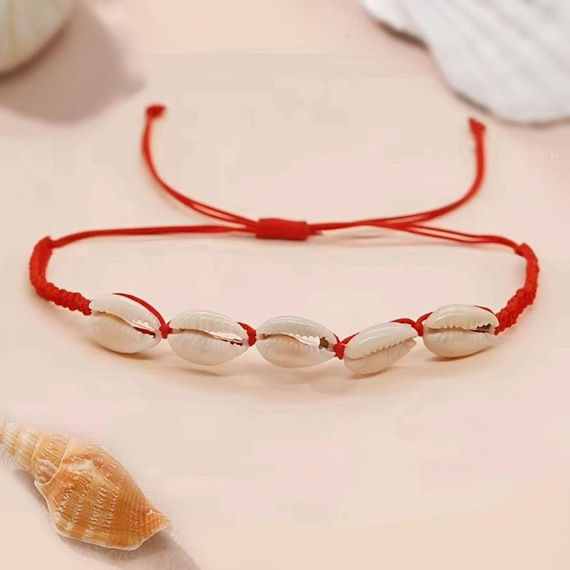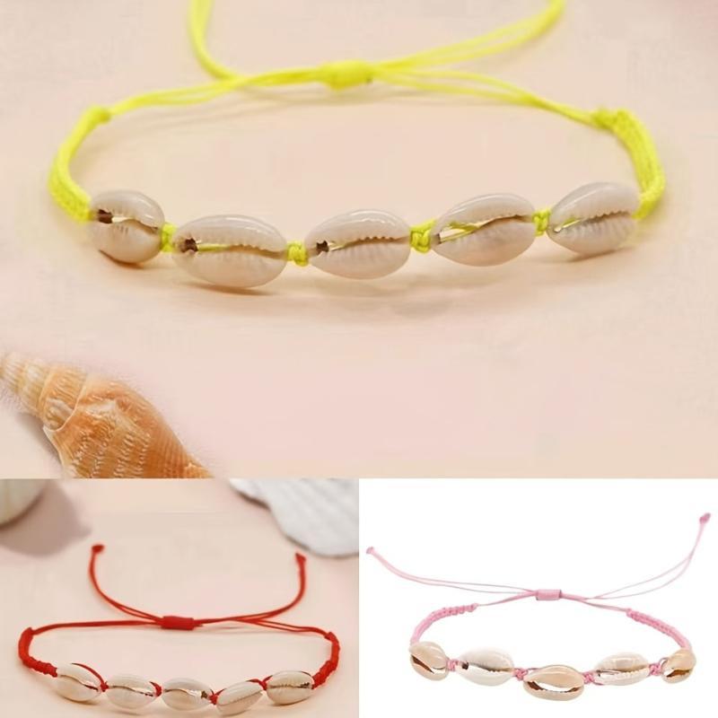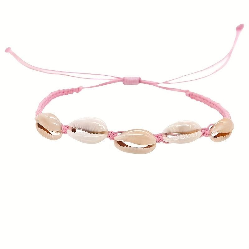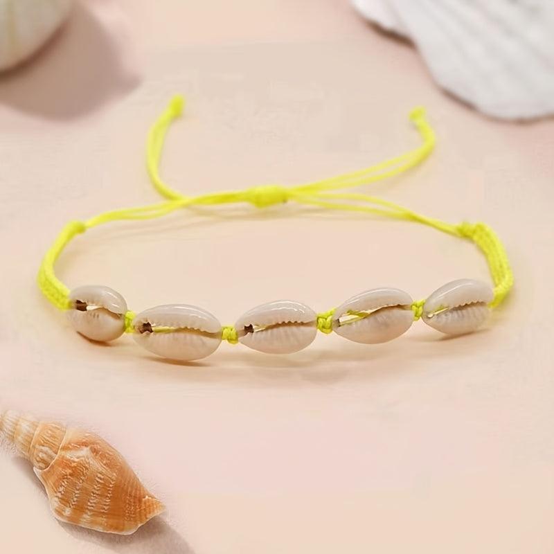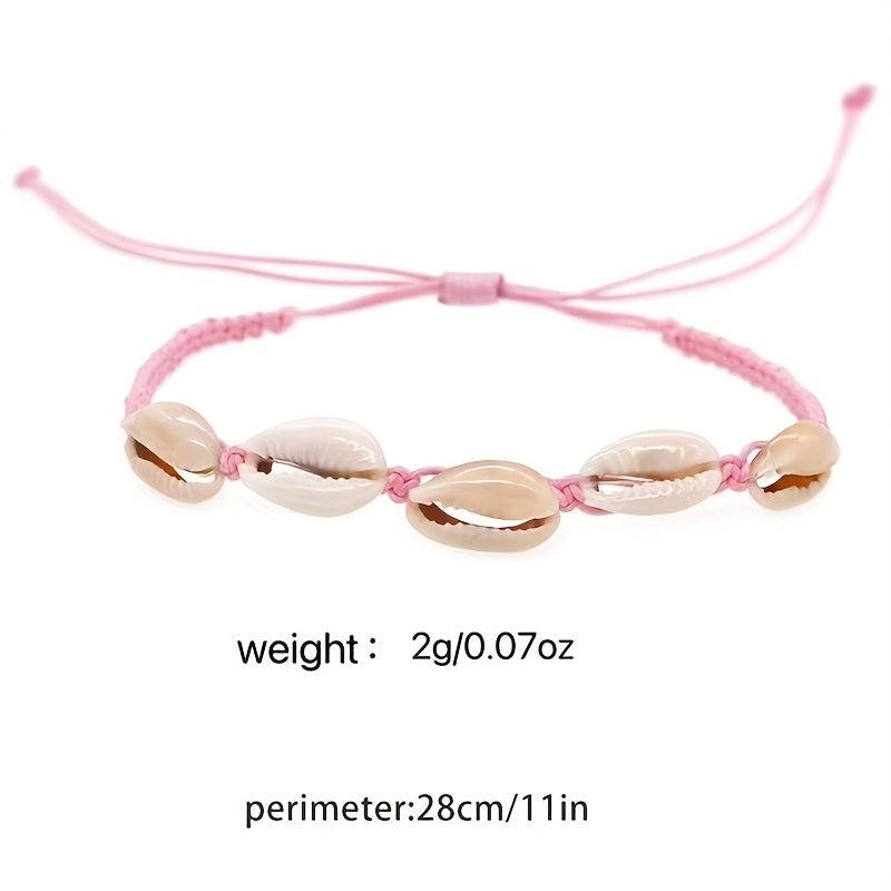 Elevate your style with this boho chic shell bracelet featuring synthetic stone weave material perfect for your vacation looks. Makes a great Valentine's Day gift or a versatile accessory for all seasons. No power required.