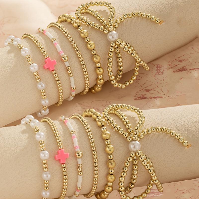Elevate your style with this Bohemian-inspired set featuring 12pcs of soft clay cross mix bead bracelets and a layered butterfly faux necklace. Perfect for daily wear or gifting.