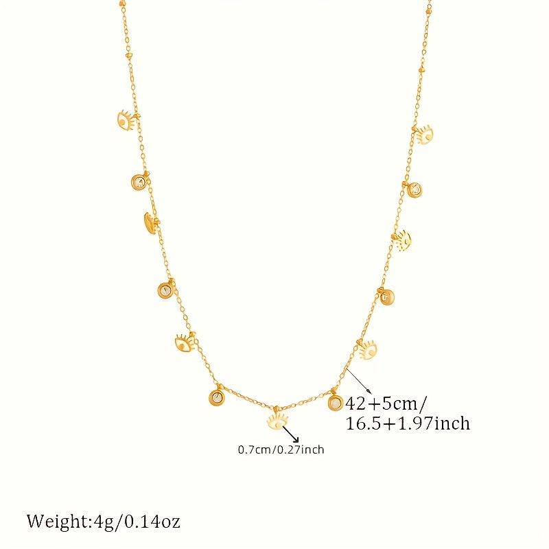 Elevate your style with this boho-inspired stainless steel necklace featuring sun & moon pendants, golden tone chain, and rhinestone accents. Suitable for both men and women, it makes a perfect gift for daily wear or special occasions.