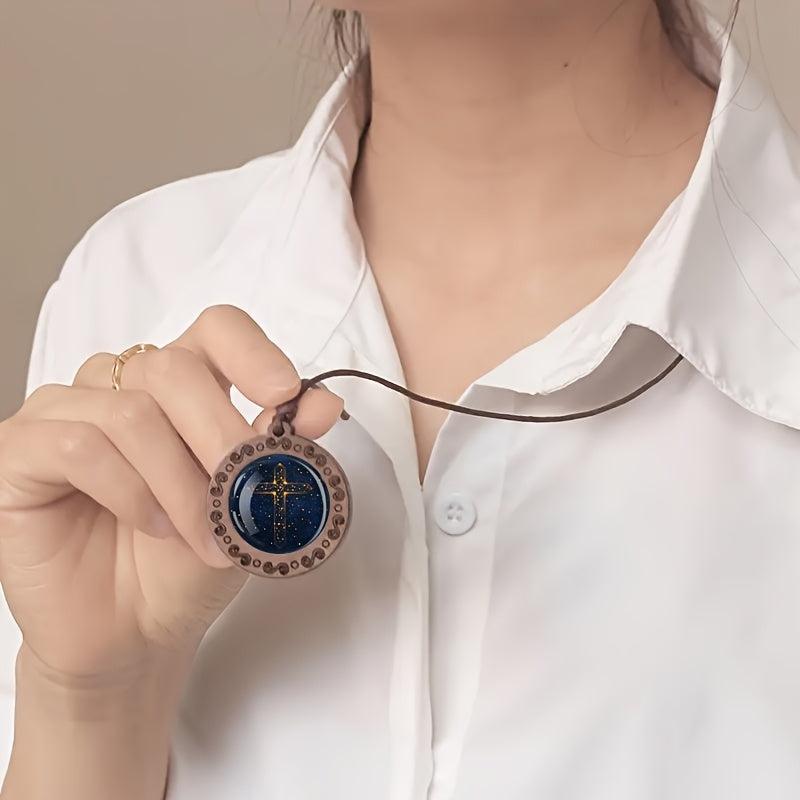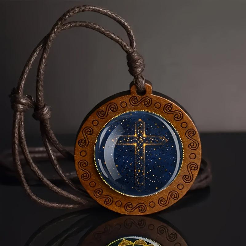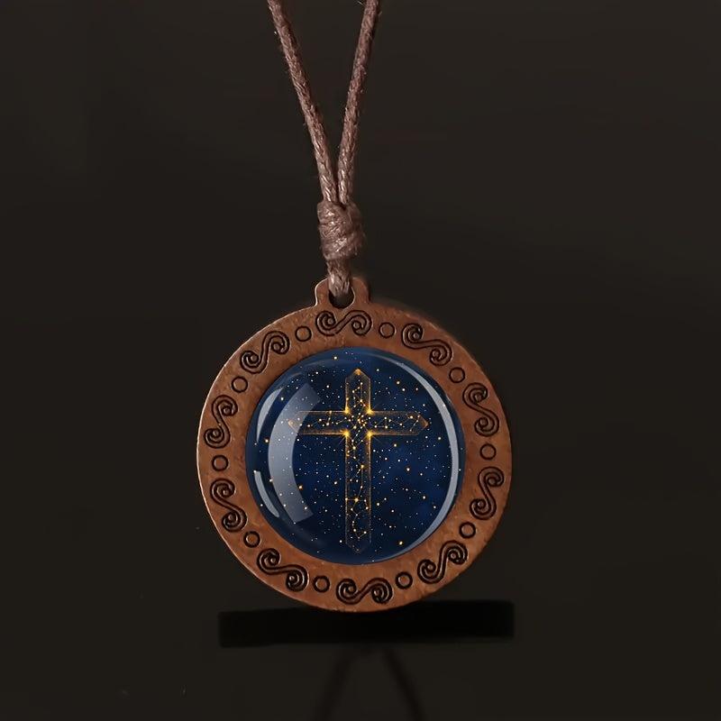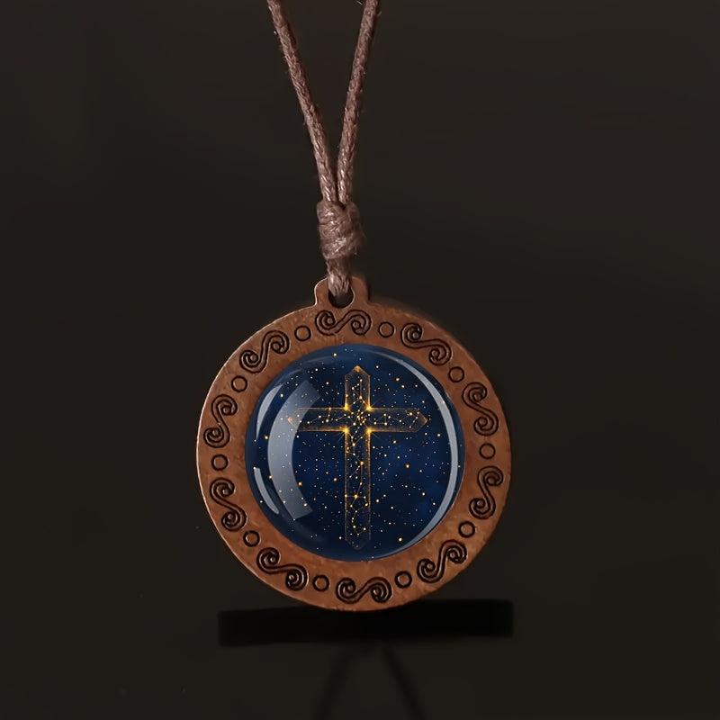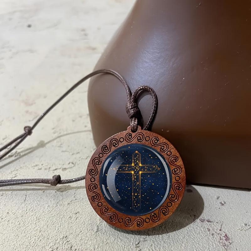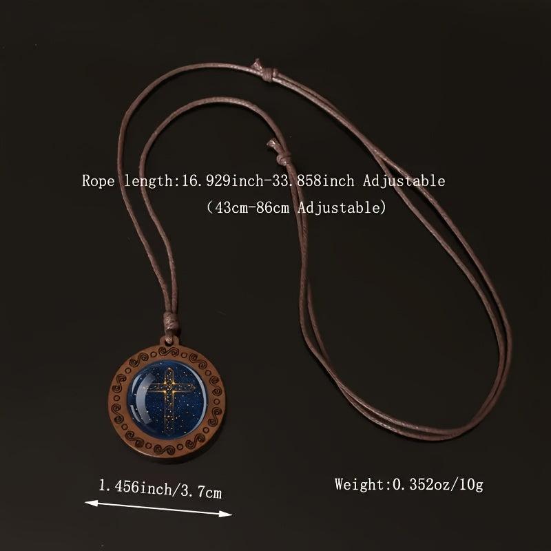 This boho-inspired necklace features a starry night cross pendant on an adjustable rope, offering a vintage wooden jewelry look. Perfect for daily wear and festive gifting.