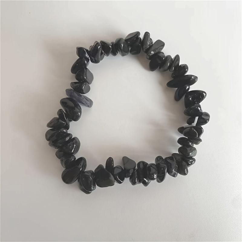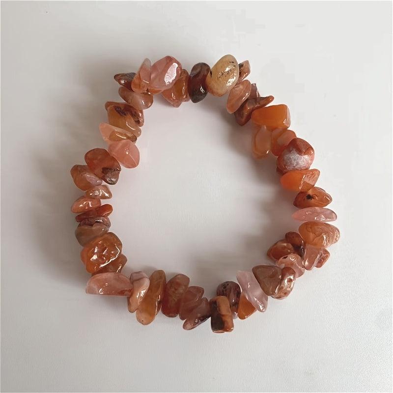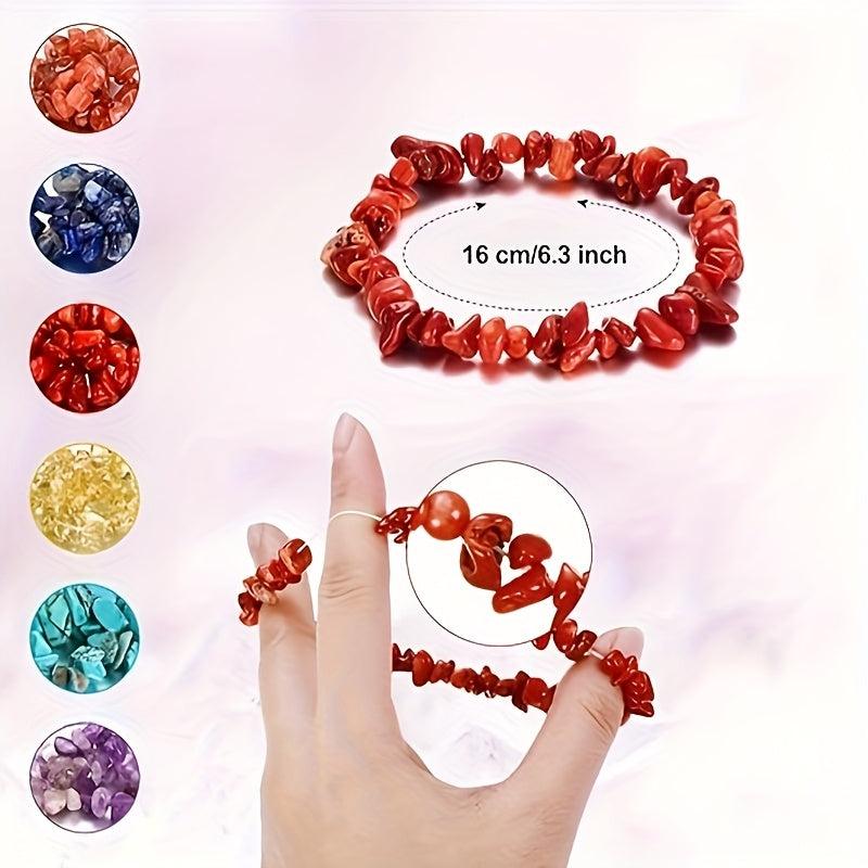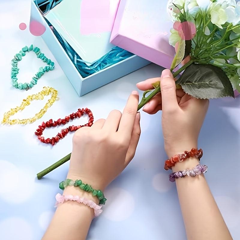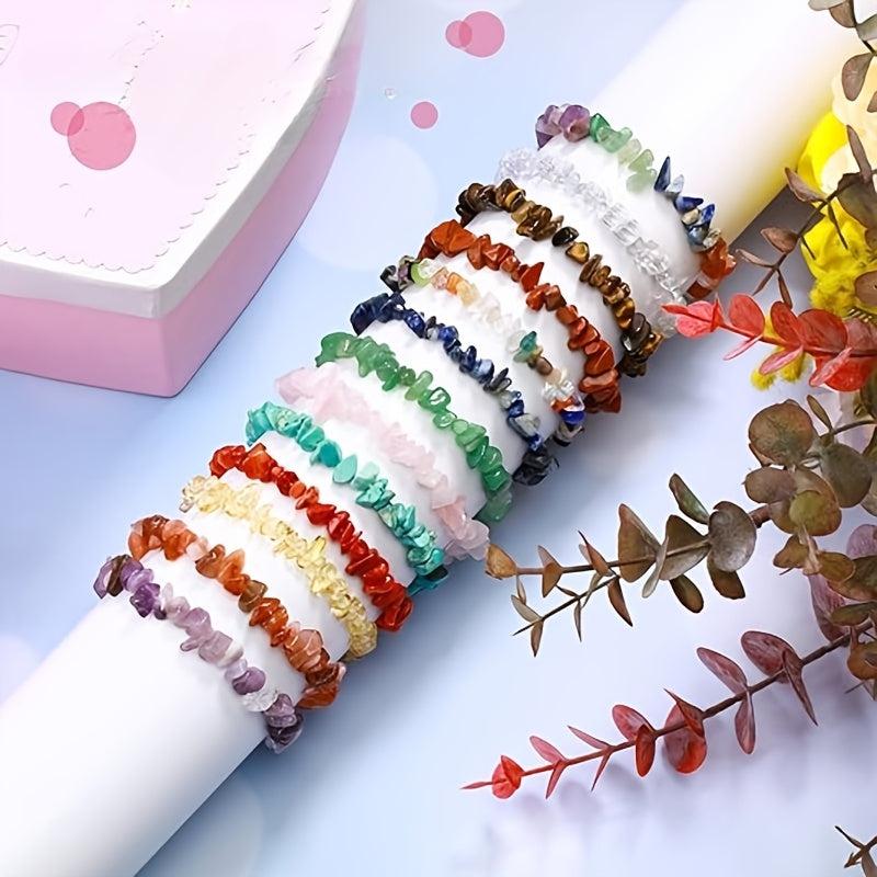 This boho bracelet features natural stone beads in assorted colors. The elastic design allows for easy wear and a comfortable fit.