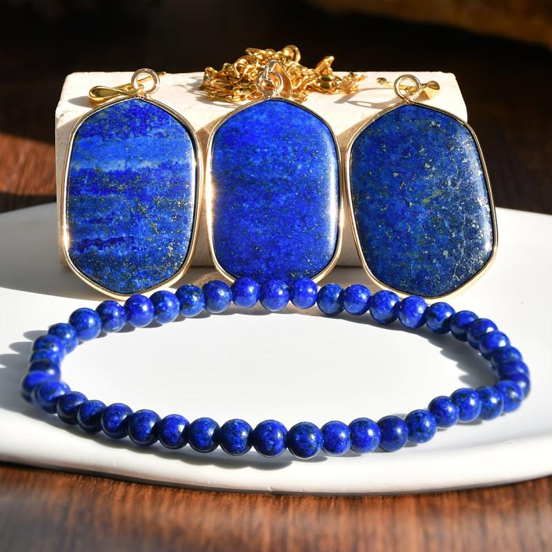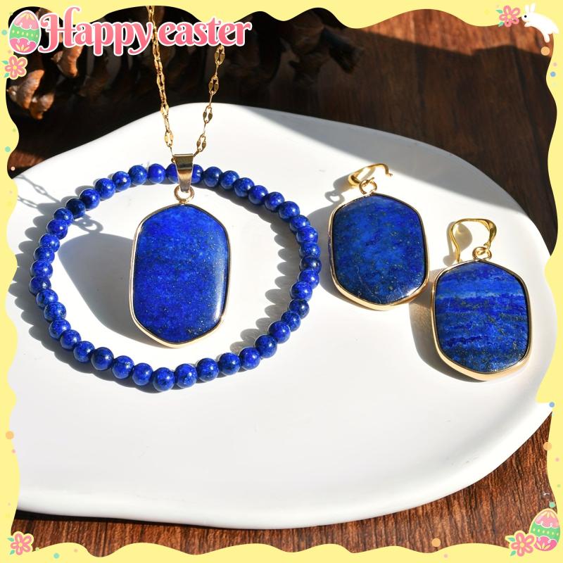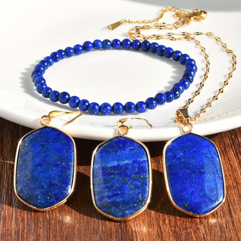 Adorn yourself with this exquisite 4-piece Bohemian-style set featuring a lapis lazuli pendant necklace, earrings, and bracelet. Perfect for daily wear, parties, and as a Valentine's or year's gift.