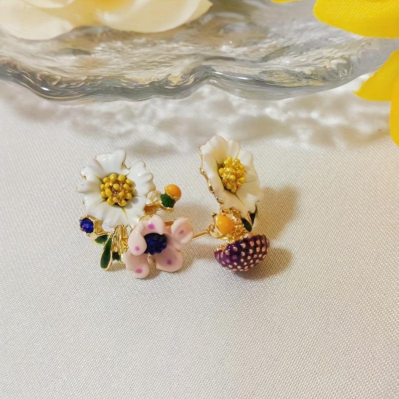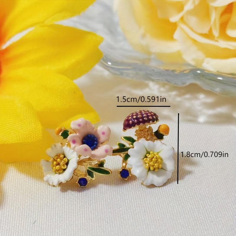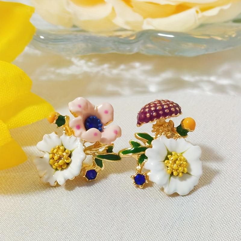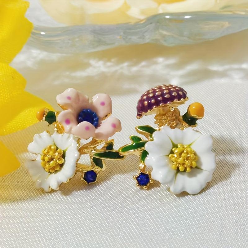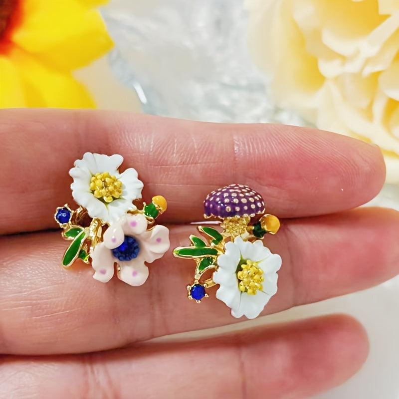Vintage boho style earrings featuring colorful flowers and butterflies. Made with a mix of copper and 925 silver plating, these earrings are perfect for daily wear and ideal for parties and festivals.
