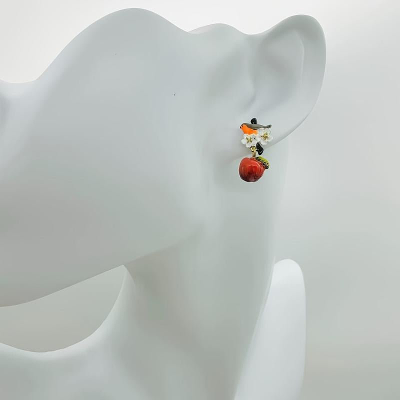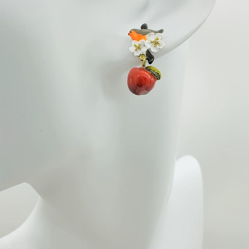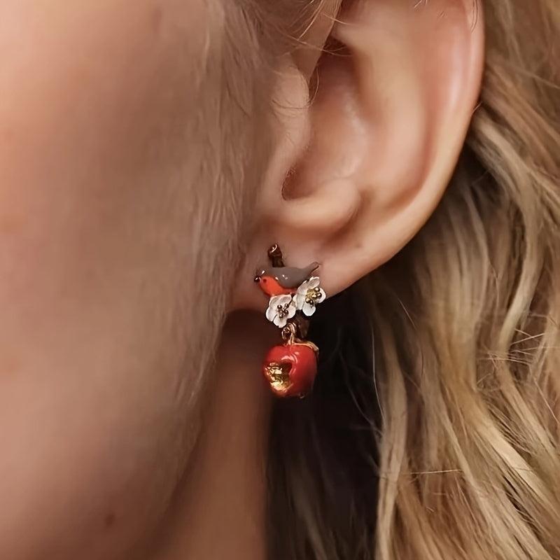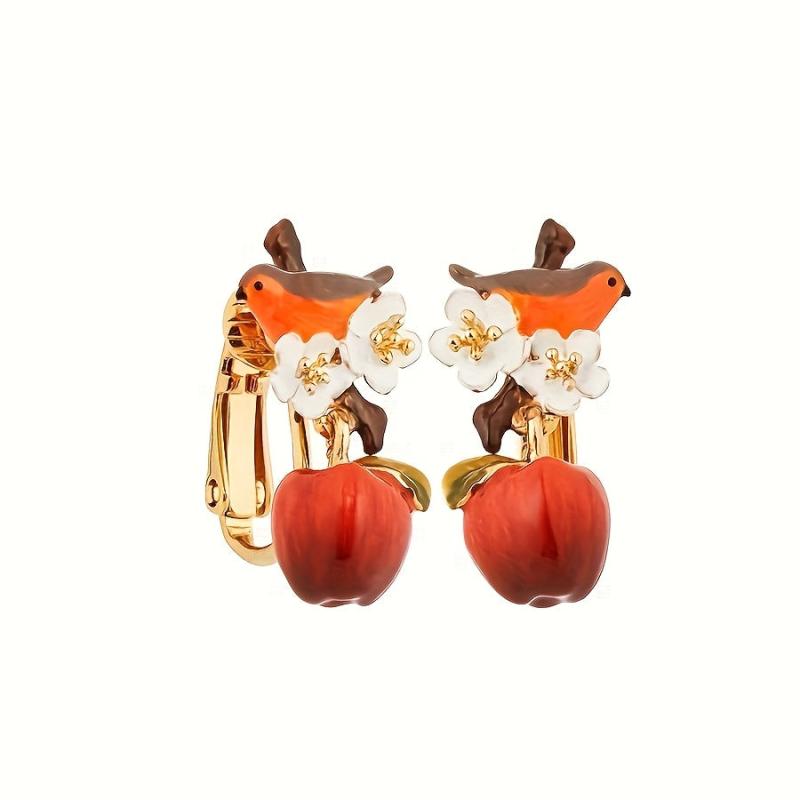 Vintage alloy clip on earrings featuring a colorful bird and flower design. Perfect for everyday wear or as a thoughtful gift for a loved one. Versatile accessory that adds a touch of charm to any outfit.