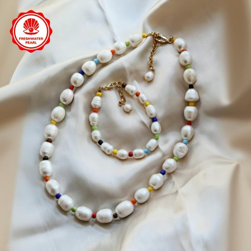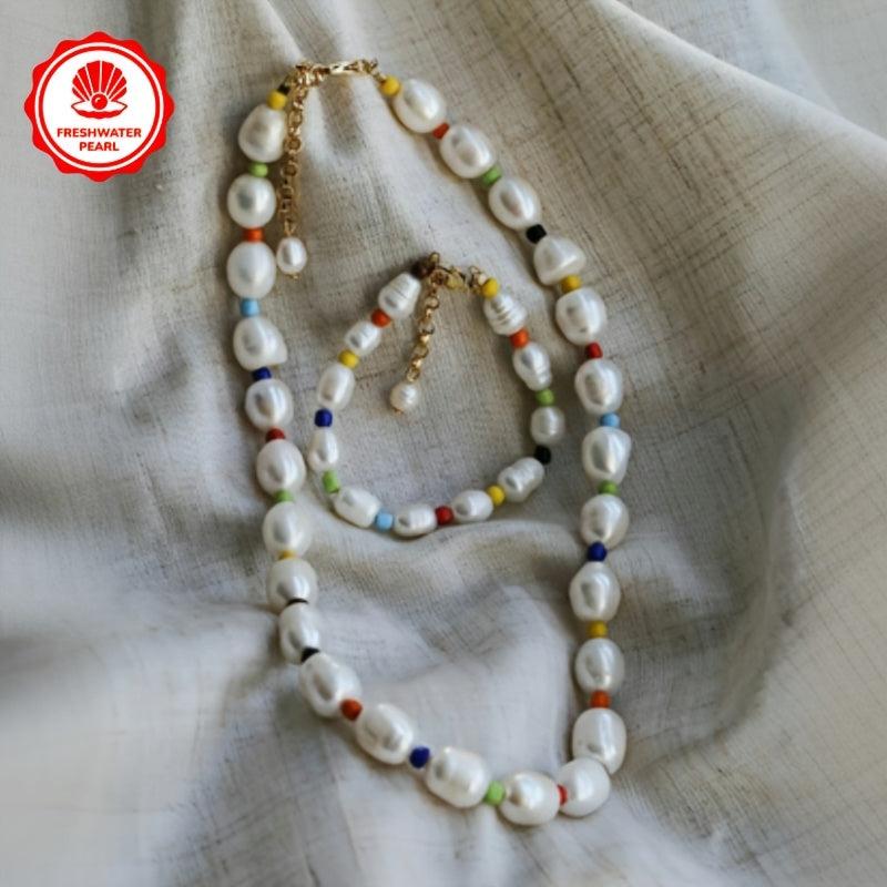 Add a touch of bohemian charm to your outfit with this natural freshwater pearl necklace or bracelet. Crafted from baroque rice shaped pearls, it's a perfect gift for her and can be worn all season long.