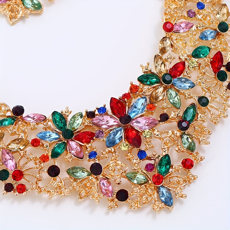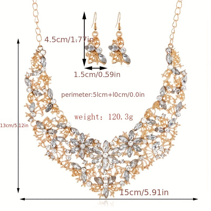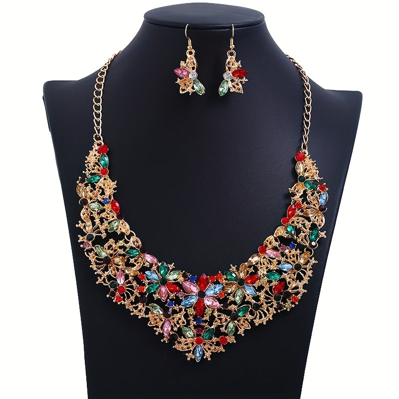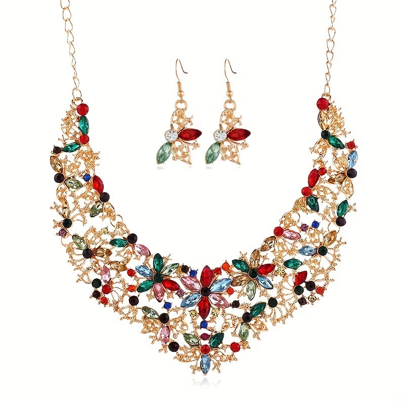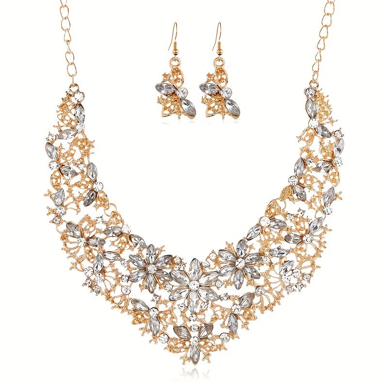 Add a touch of boho chic to your evening party look with this 3-piece jewelry set. Featuring an exaggerated flower shape design, this set includes earrings and a necklace. Available in two classic colors to choose from.