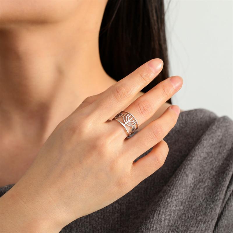 This adjustable ring features a boho style design, perfect for men who appreciate vintage religious jewelry. It is a great gift for Hanukkah, birthdays, or any special occasion.