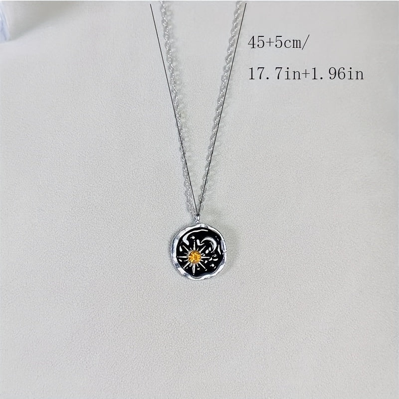 Embrace the boho trend with this men's pendant necklace featuring an inlaid moonstone design. Perfect for adding a touch of mystique to your look.