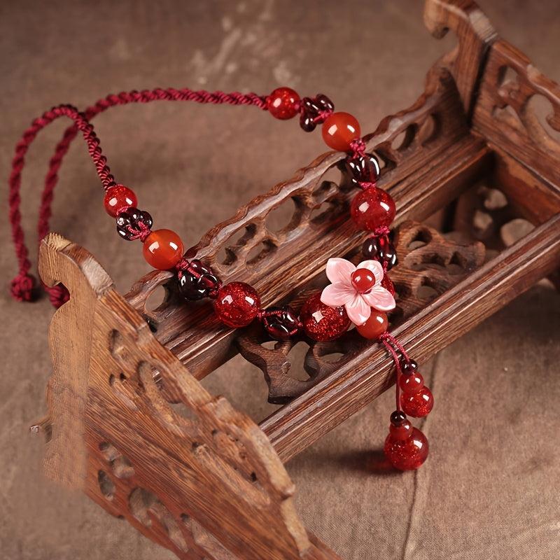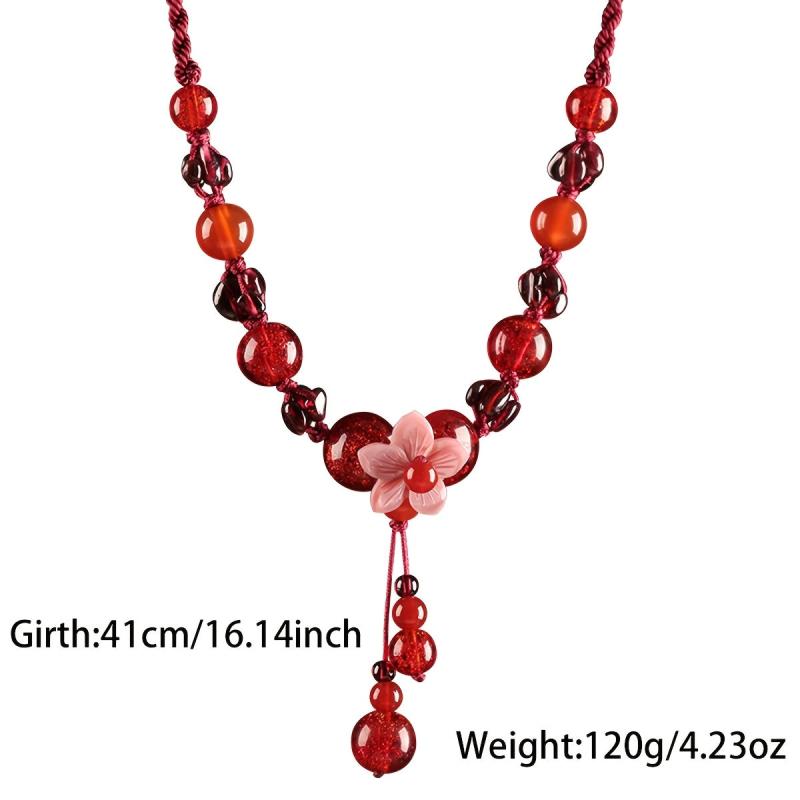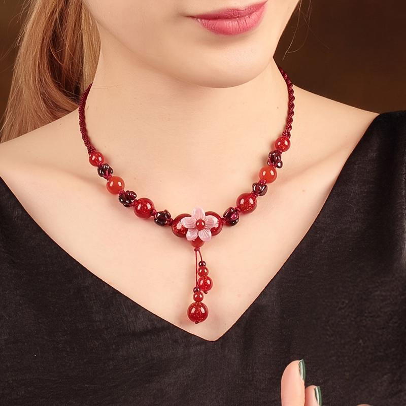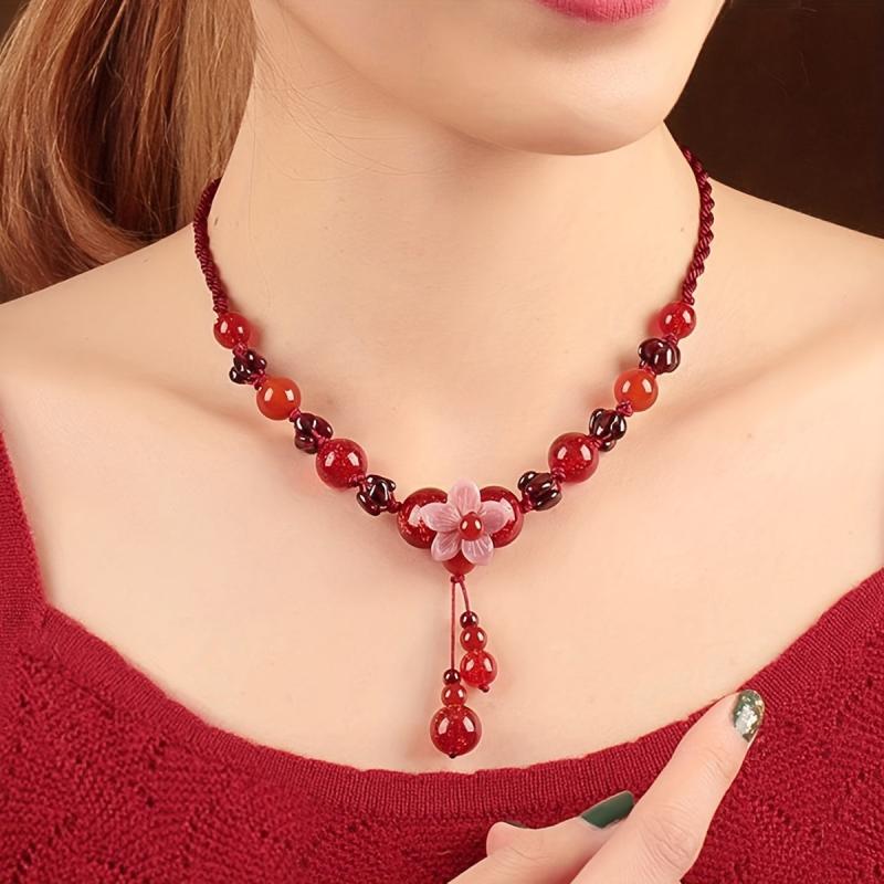 This boho style red flower choker necklace features a stone pendant, making it perfect for daily wear. It is a versatile accessory that is suitable for all seasons and makes a great gift for Valentine's Day.